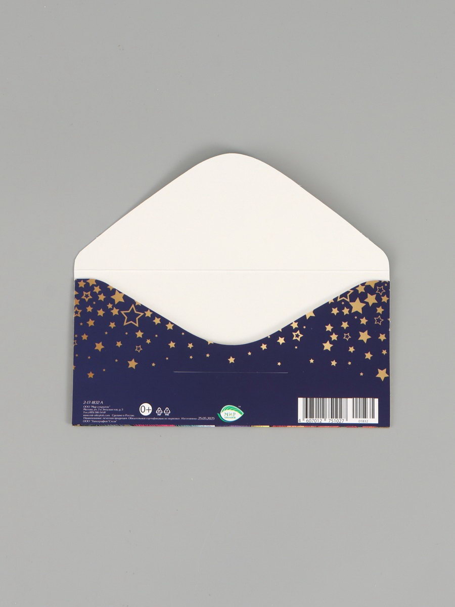 Конверт для денег "Весёлого дня рождения!", 16.5 x 8 см, Мир открыток, Россия