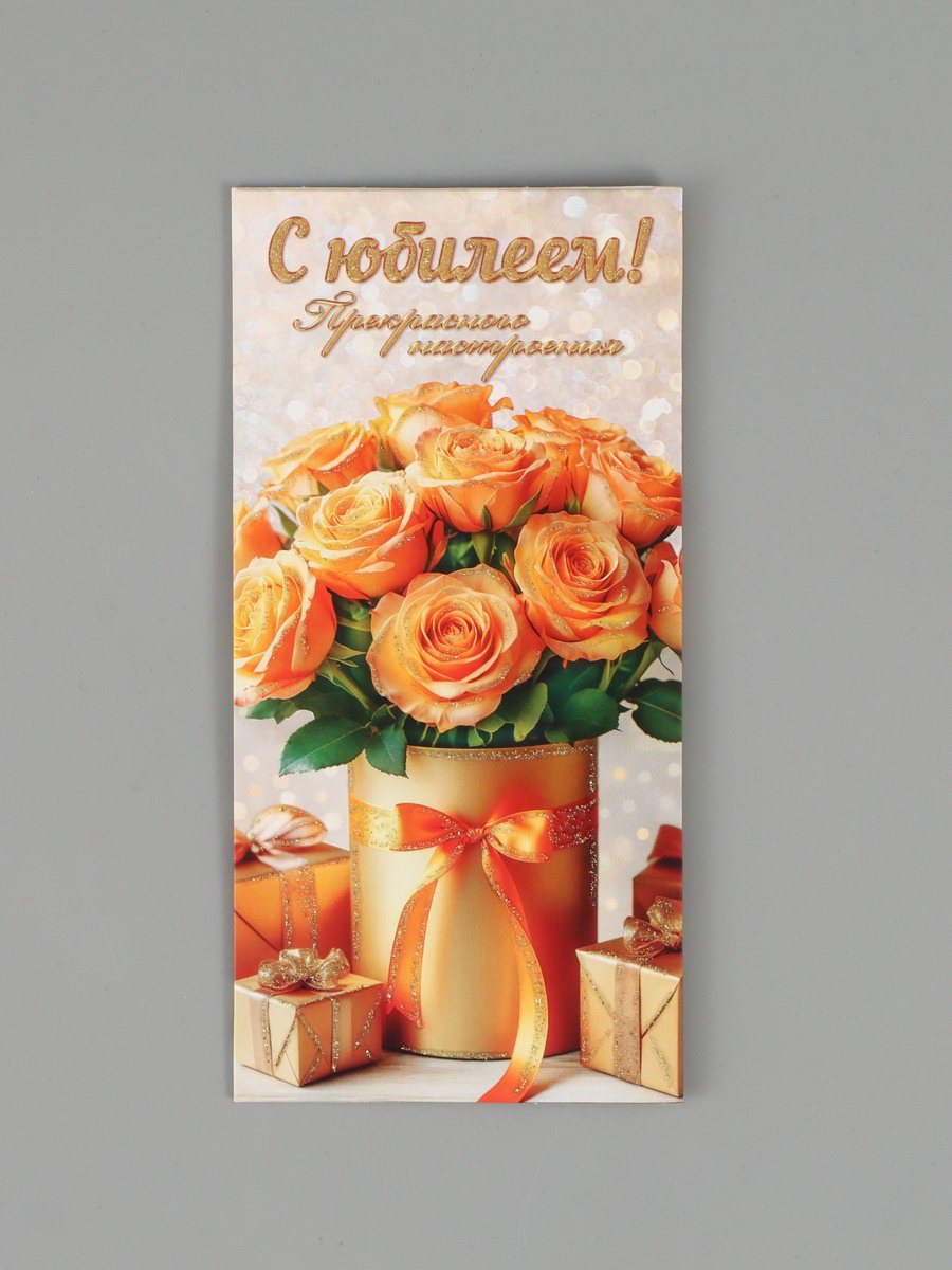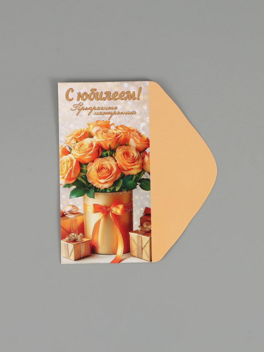 Конверт для денег "С юбилеем вас!", глиттер, 16.5 x 8 см, Мир открыток, Россия