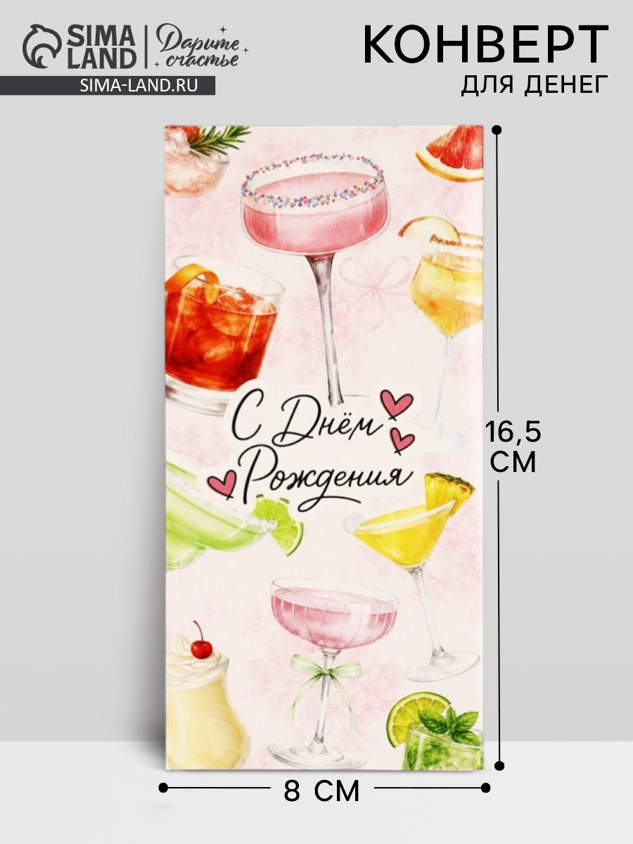 Конверт для денег "С Днём Рождения", 16.5x8 см, Дарите Счастье, Россия