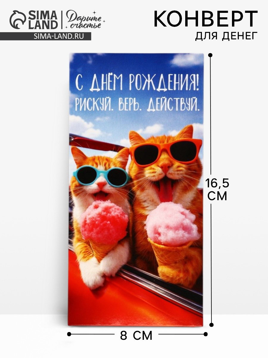 Конверт для денег "С Днём Рождения",16.5x8 см, Дарите Счастье, Россия