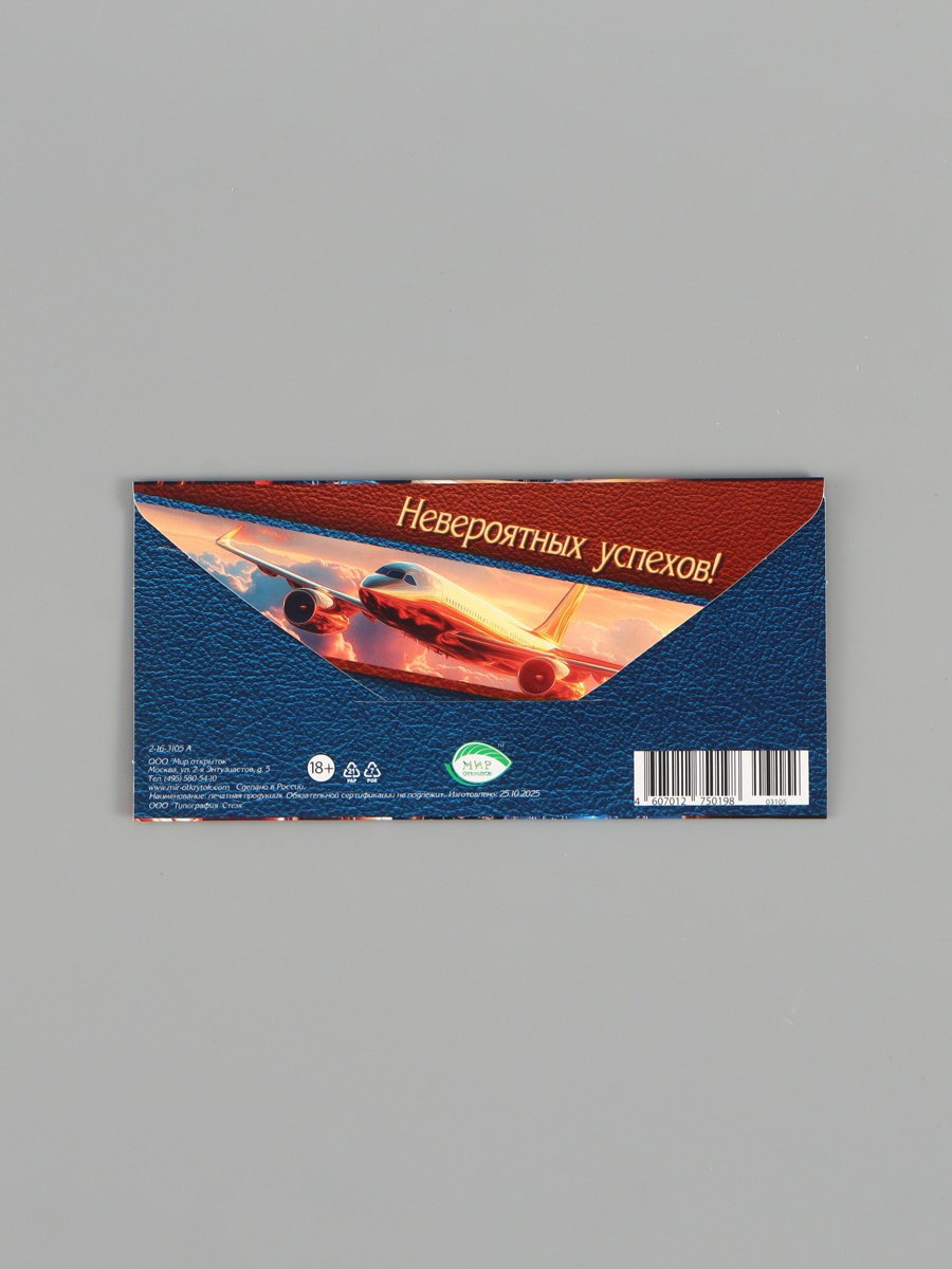 Конверт для денег "С юбилеем!", будь на высоте, 16.5x8 см, Россия