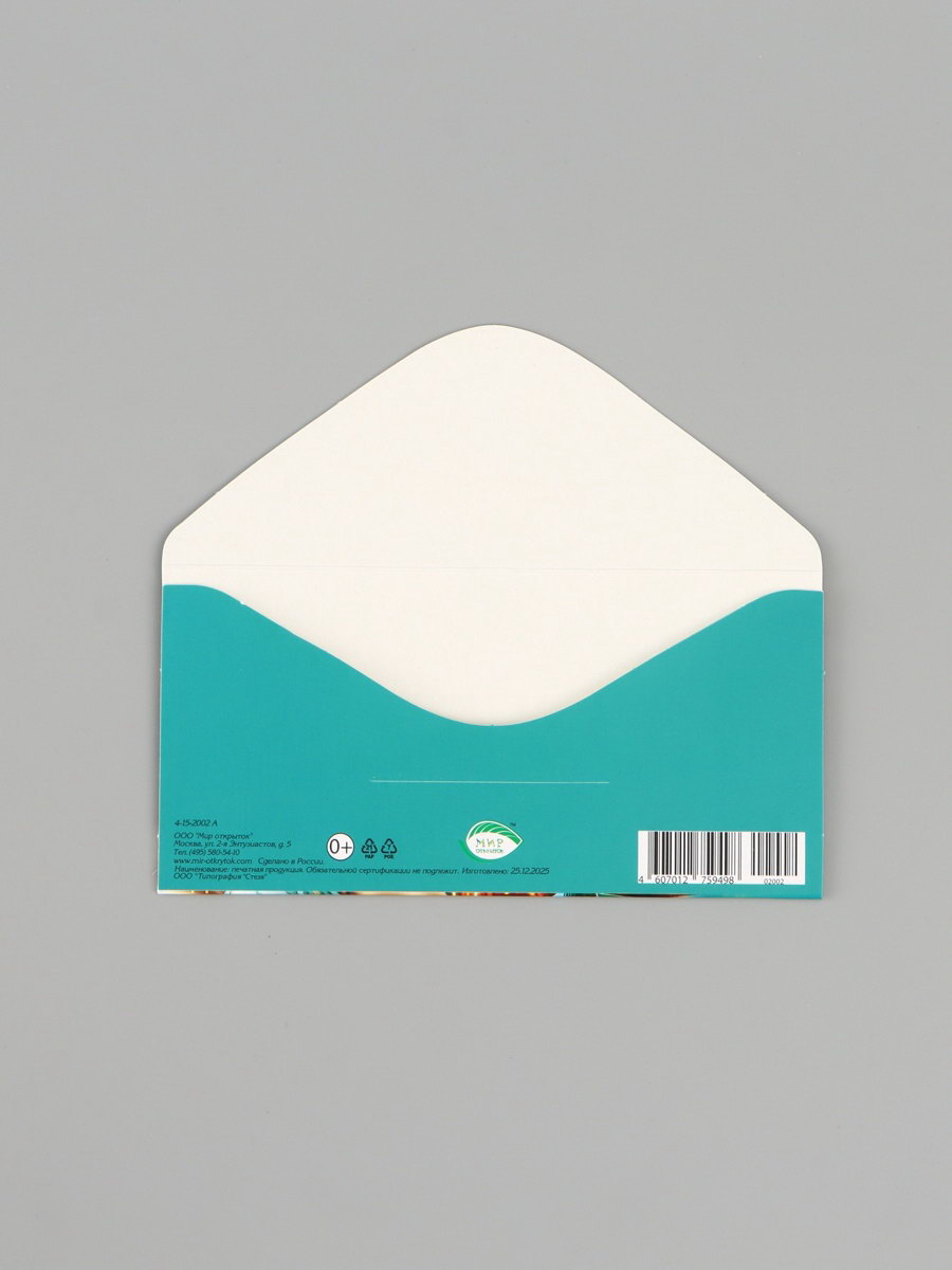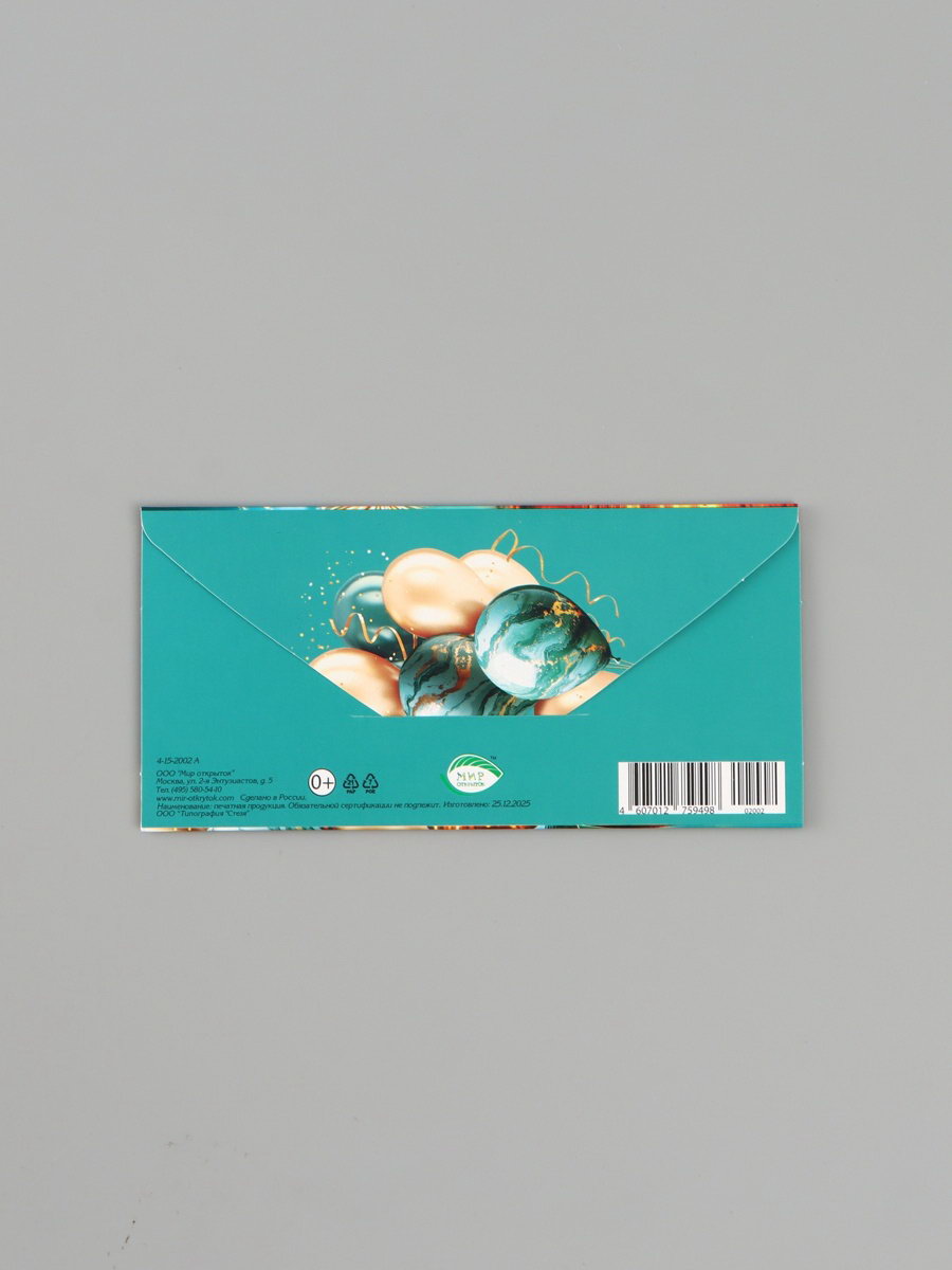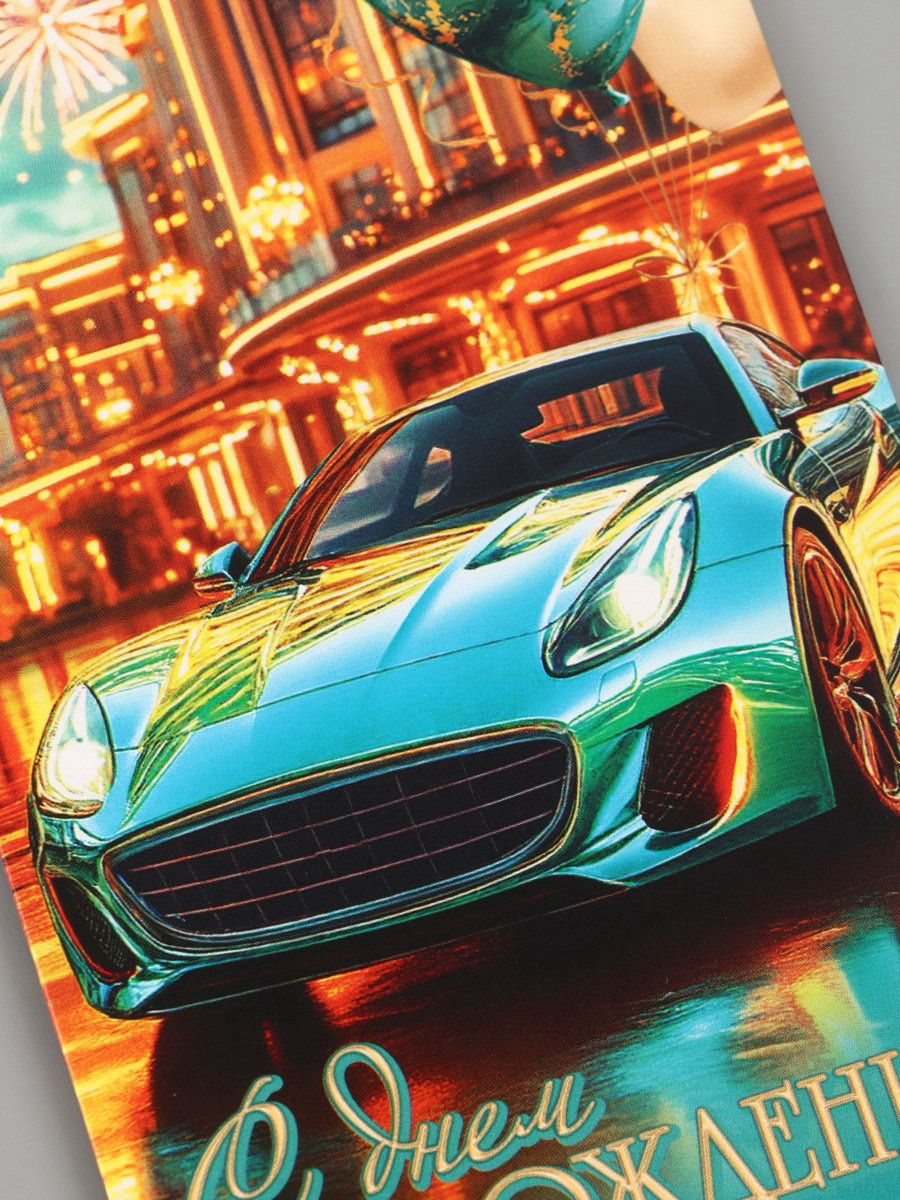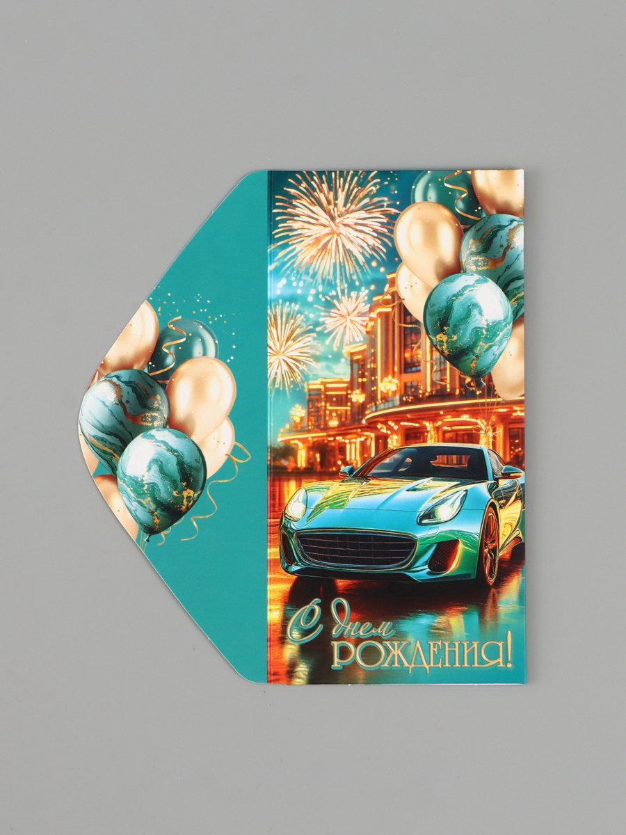 Конверт для денег "С днём рождения!", автомобиль, бирюзовый, 16.5x8 см, Россия