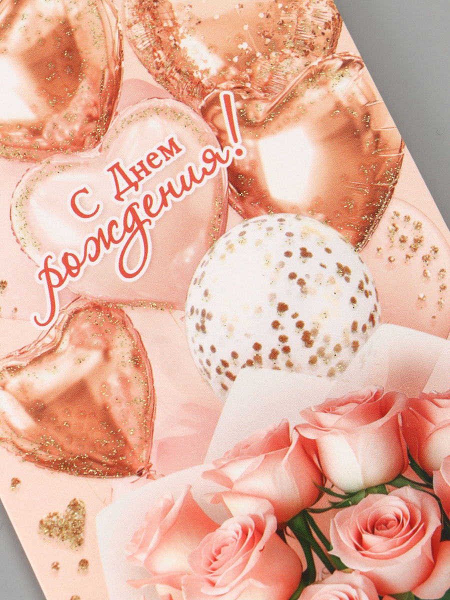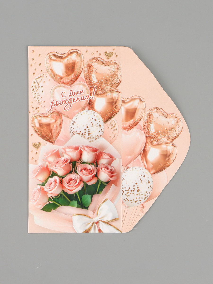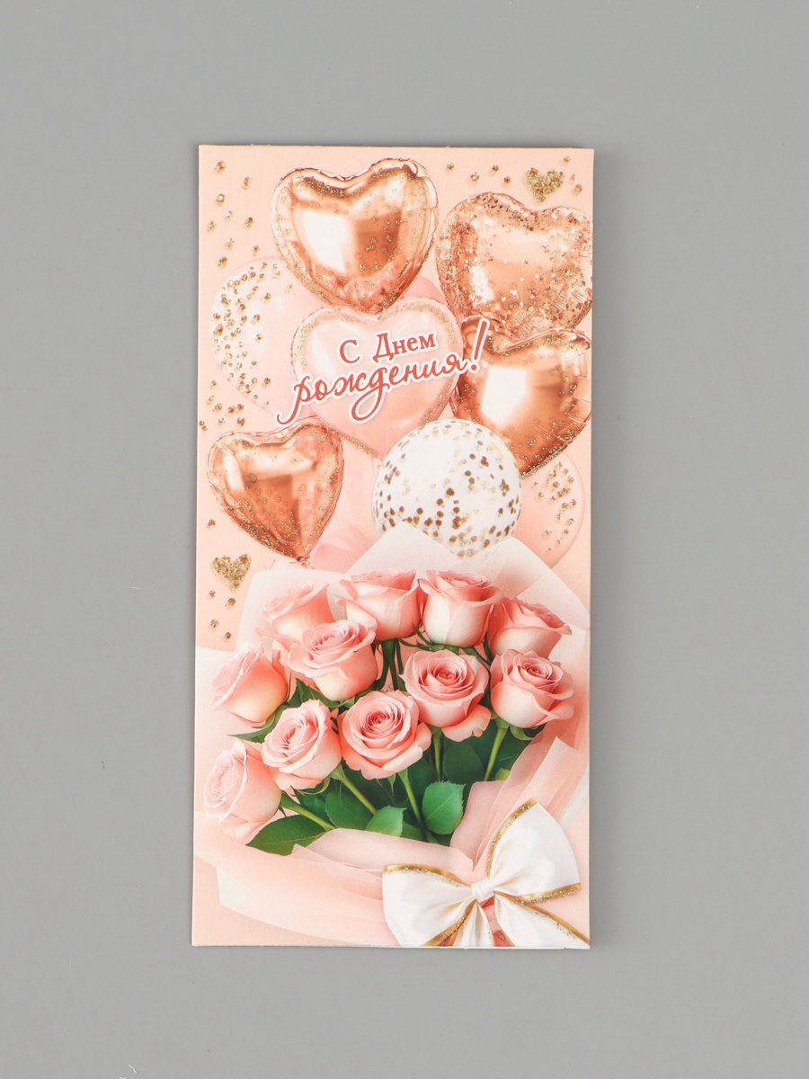 Конверт для денег "С днём рождения!", букет роз, 16.5x8 см, Россия
