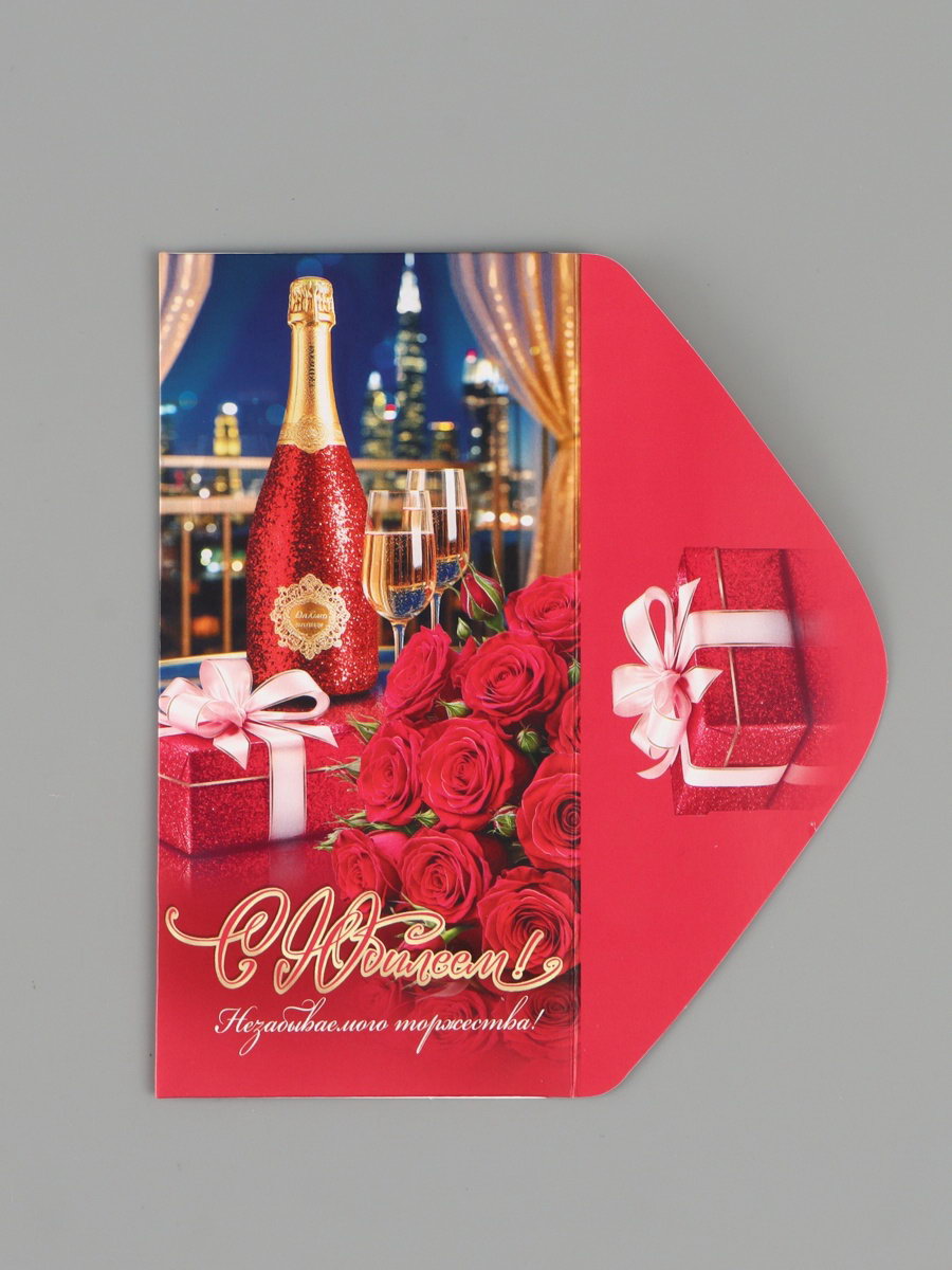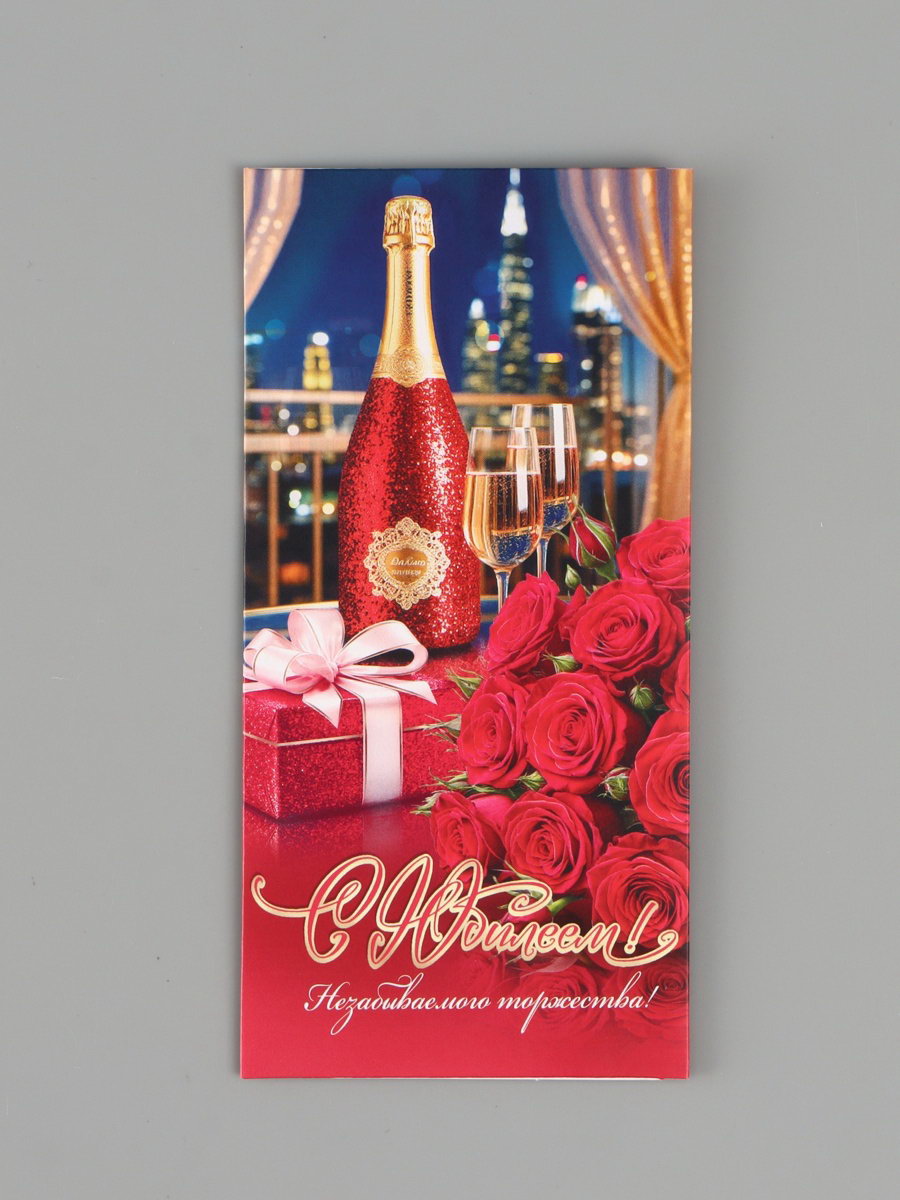 Конверт для денег "С юбилеем!", яркие розы, 16.5x8 см, Россия