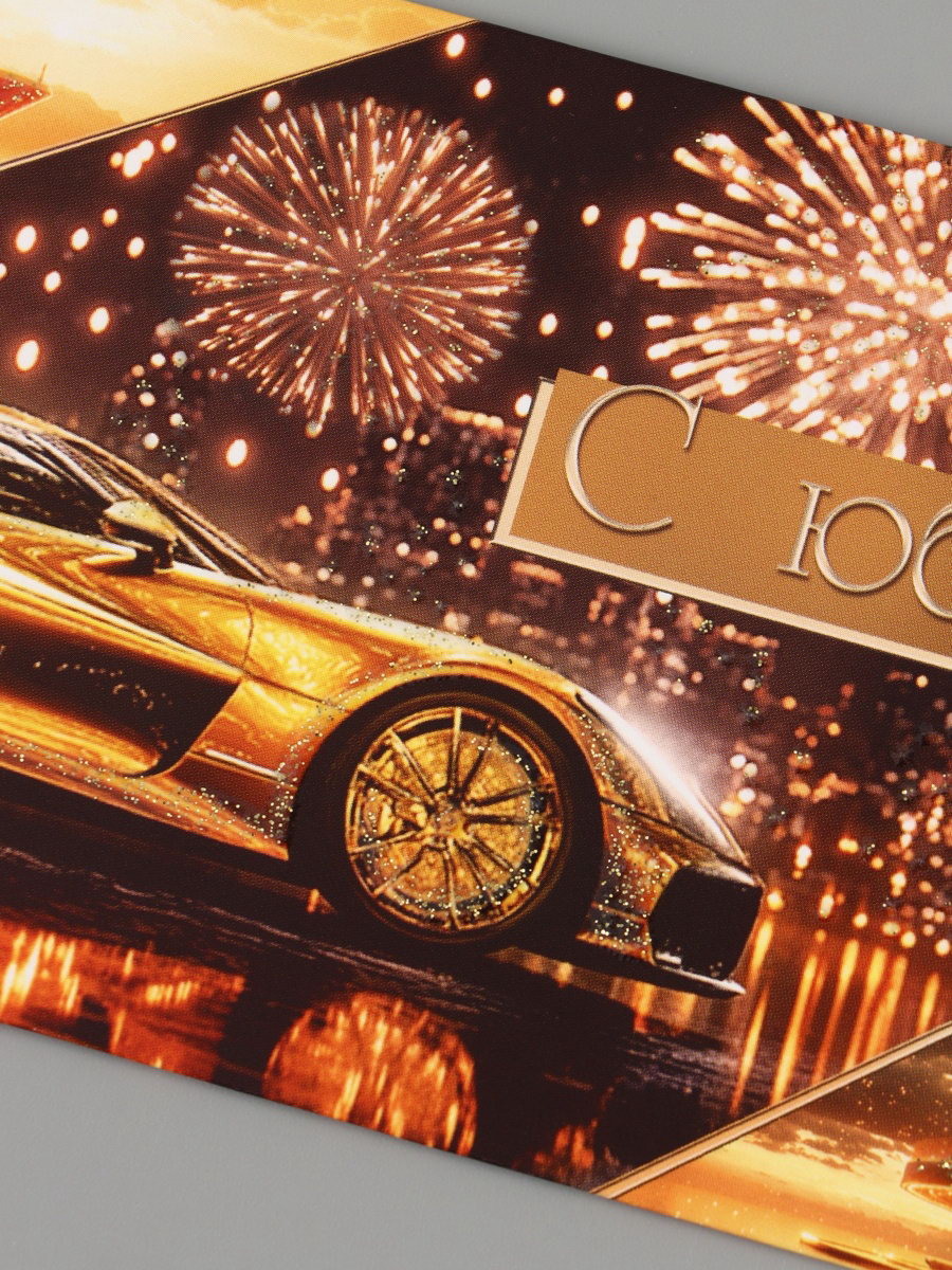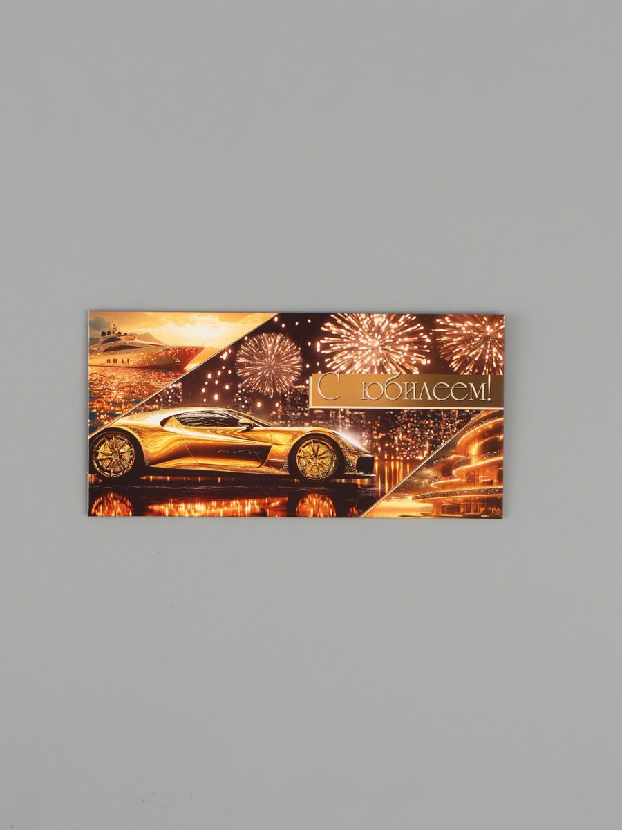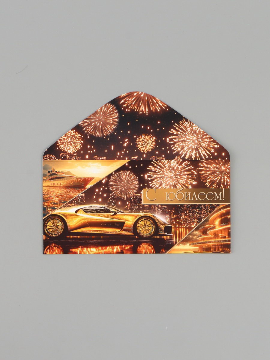 Конверт для денег "С юбилеем!", золотой автомобиль, 16.5x8 см, Россия
