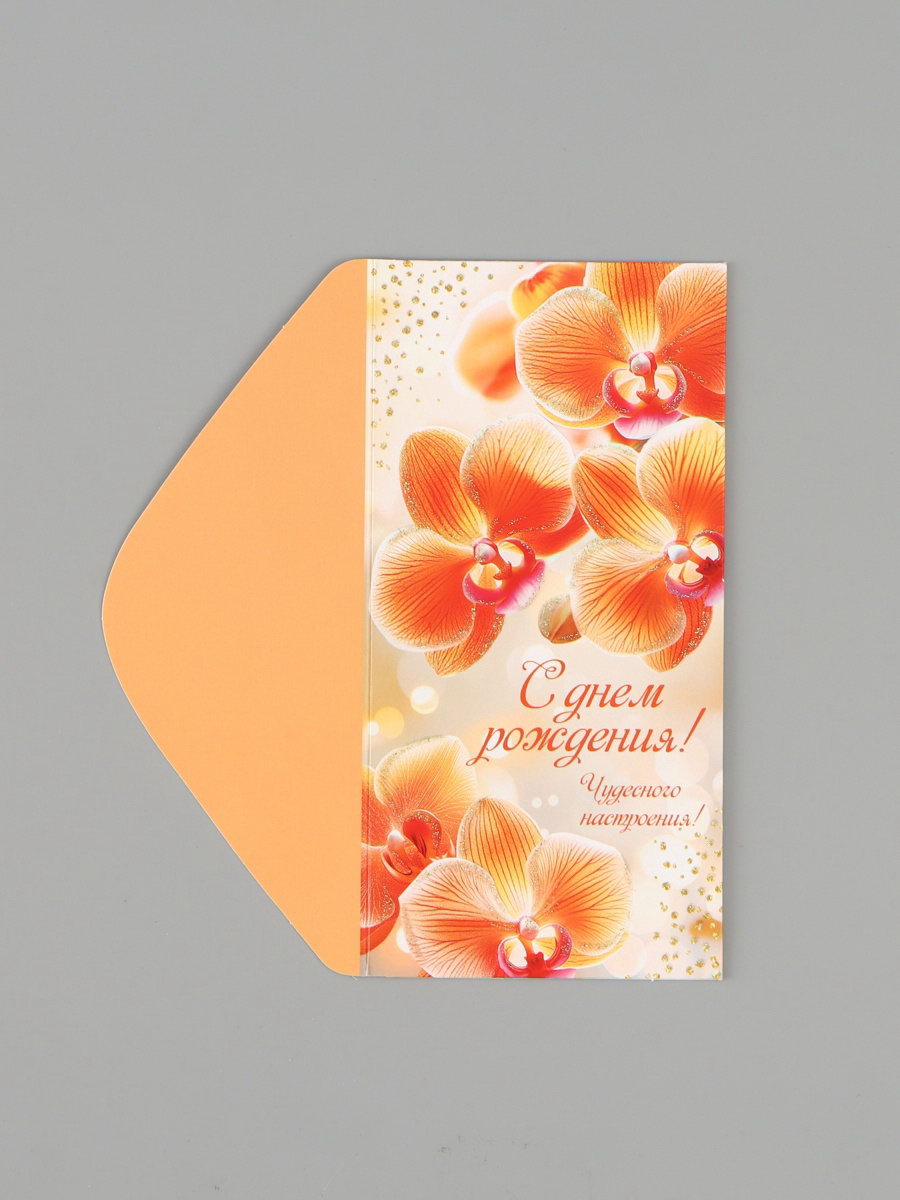 Конверт для денег "С днём рождения!", архидея, 16.5x8 см, Россия
