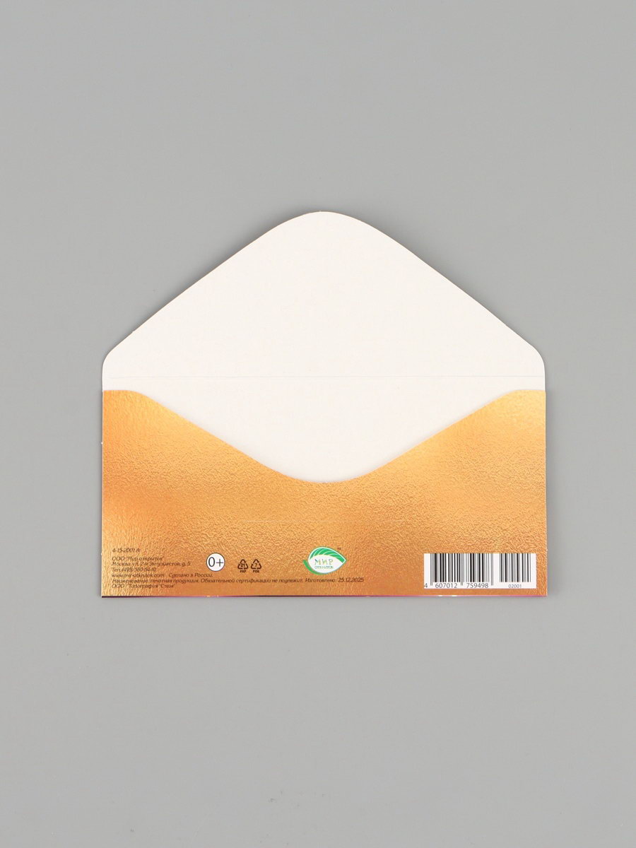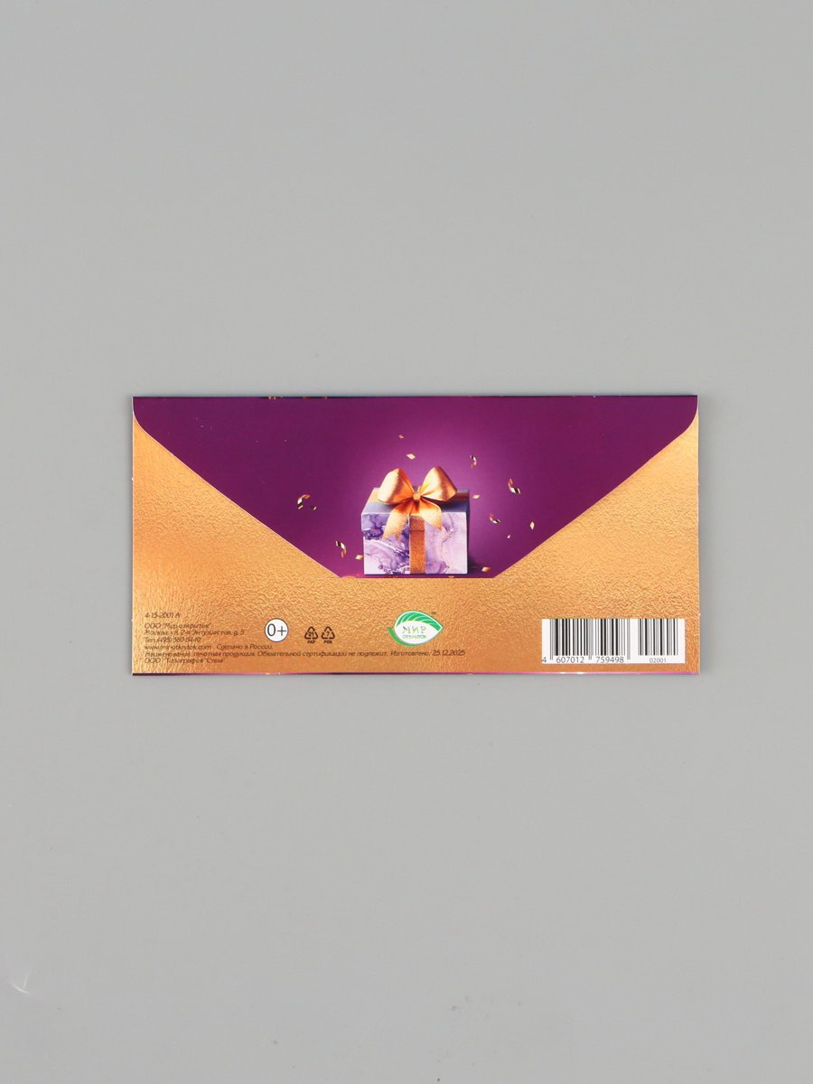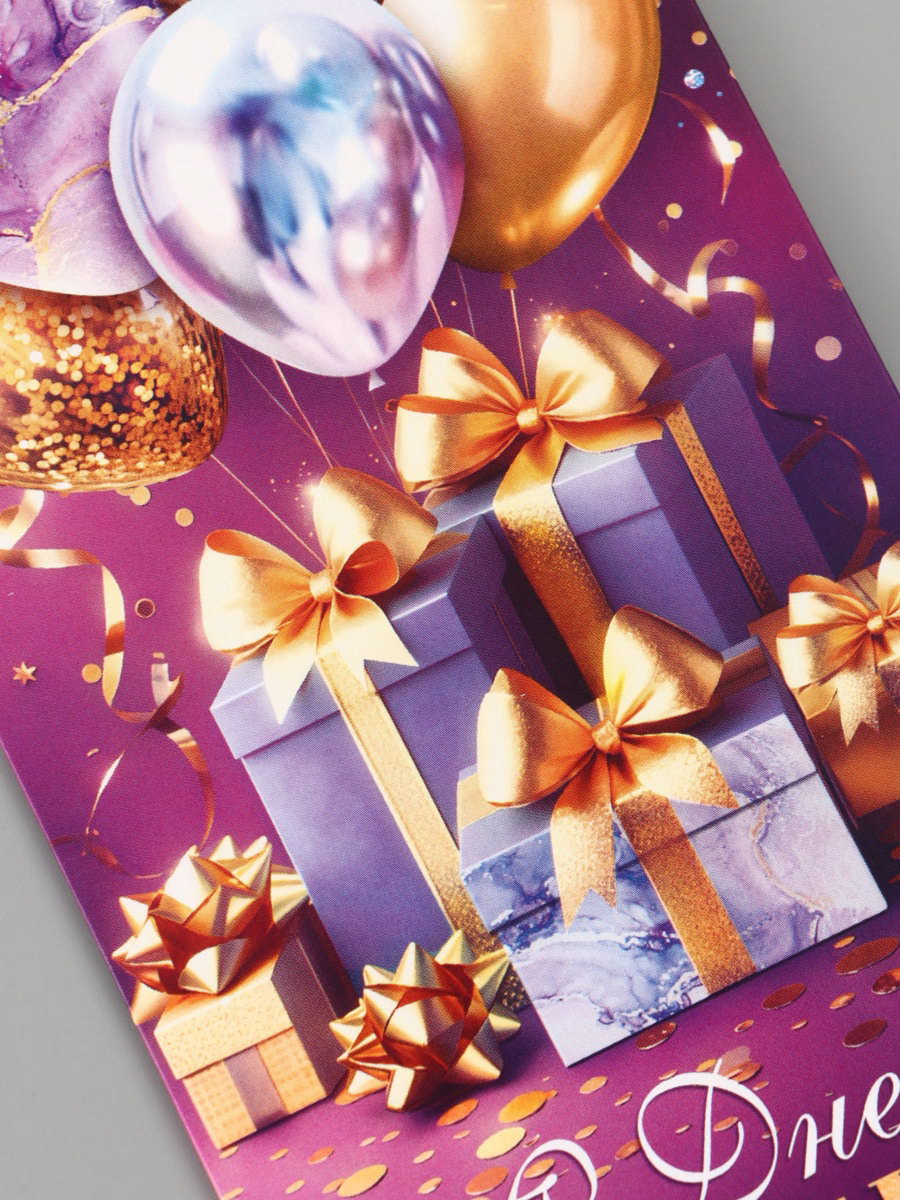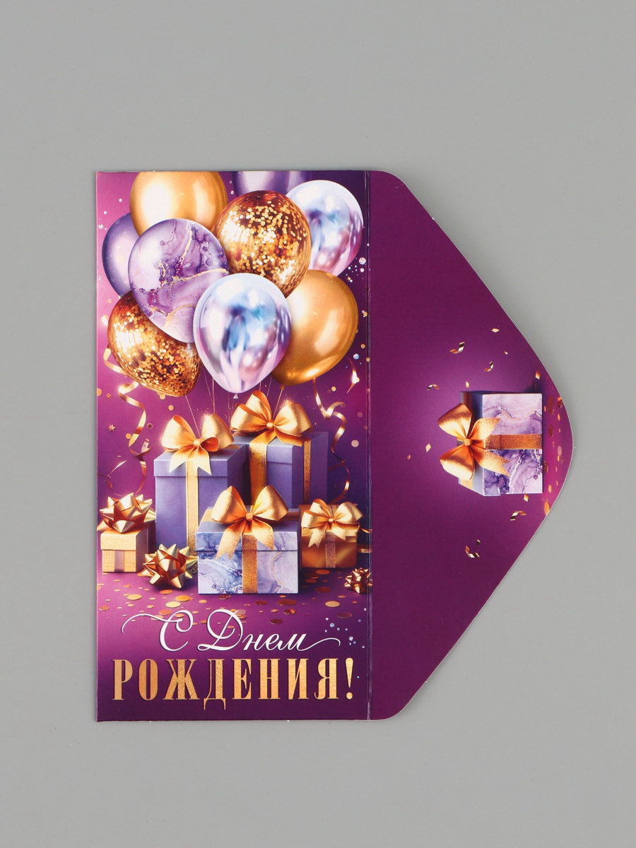 Конверт для денег "С днём рождения!", подарки, сиреневый, 16.5x8 см, Россия