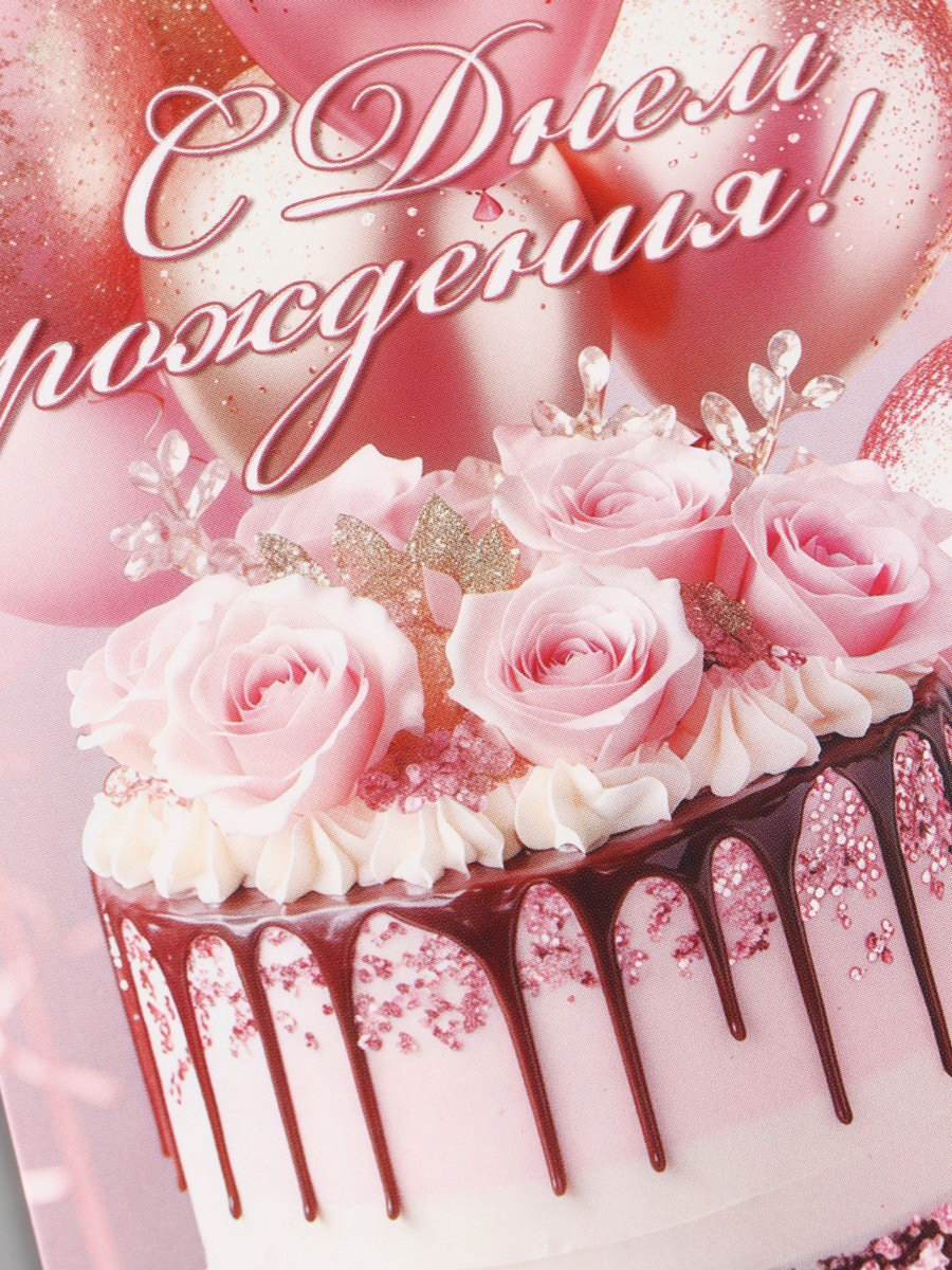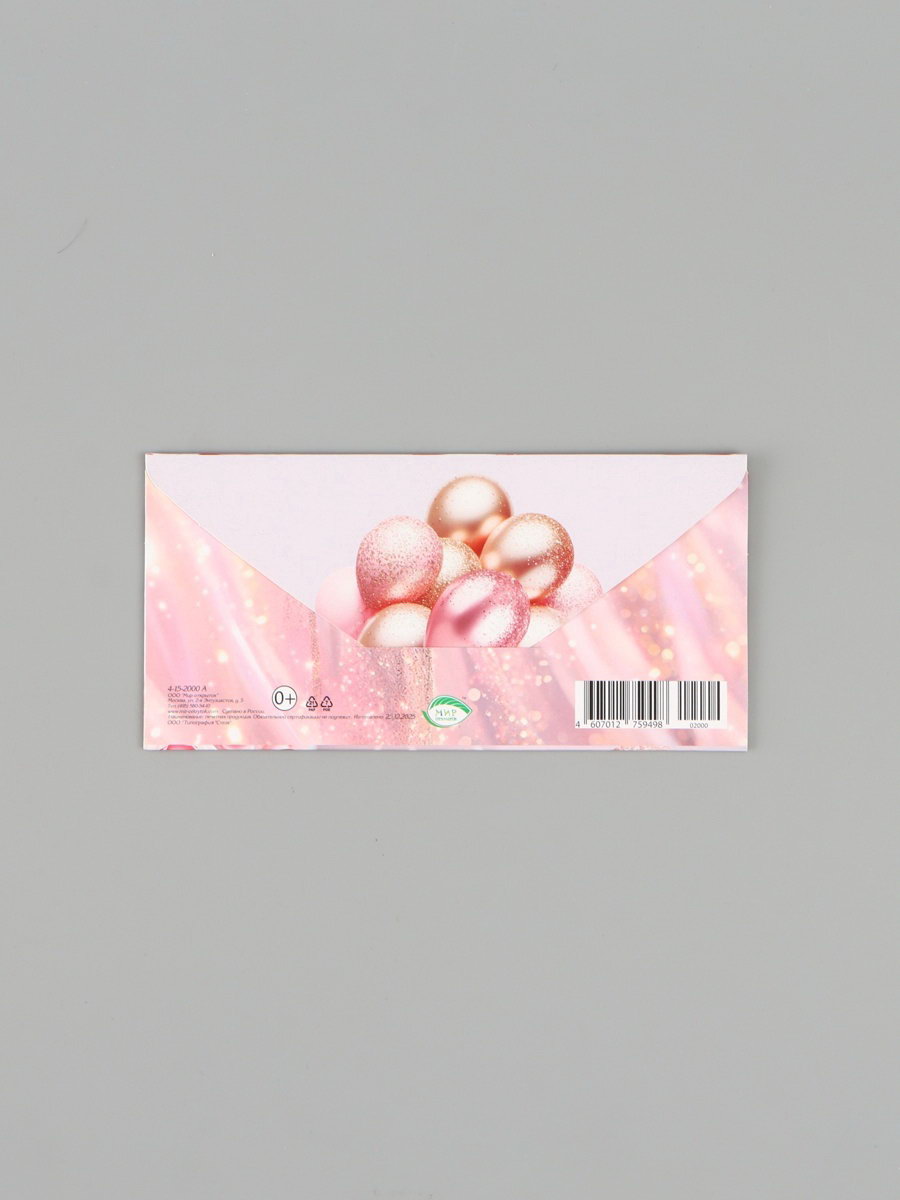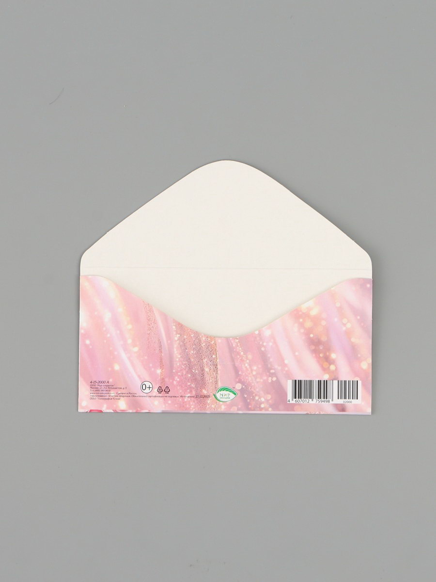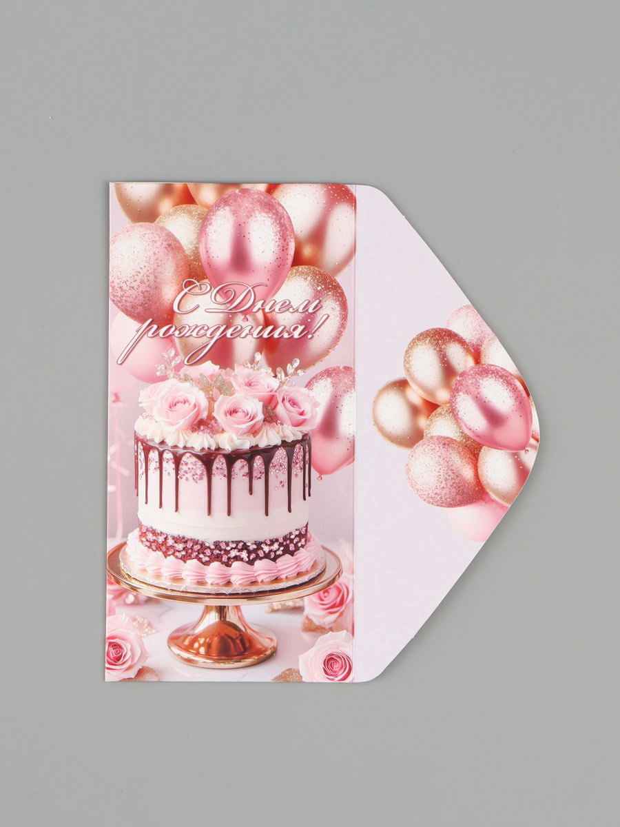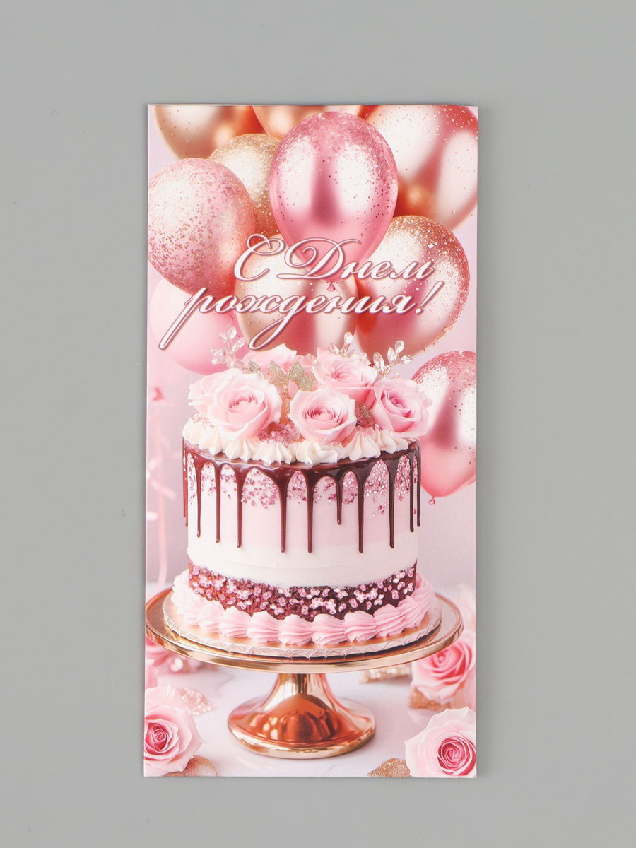 Конверт для денег "С Днём рождения!", розовые пионы, 16.5x8 см, Россия