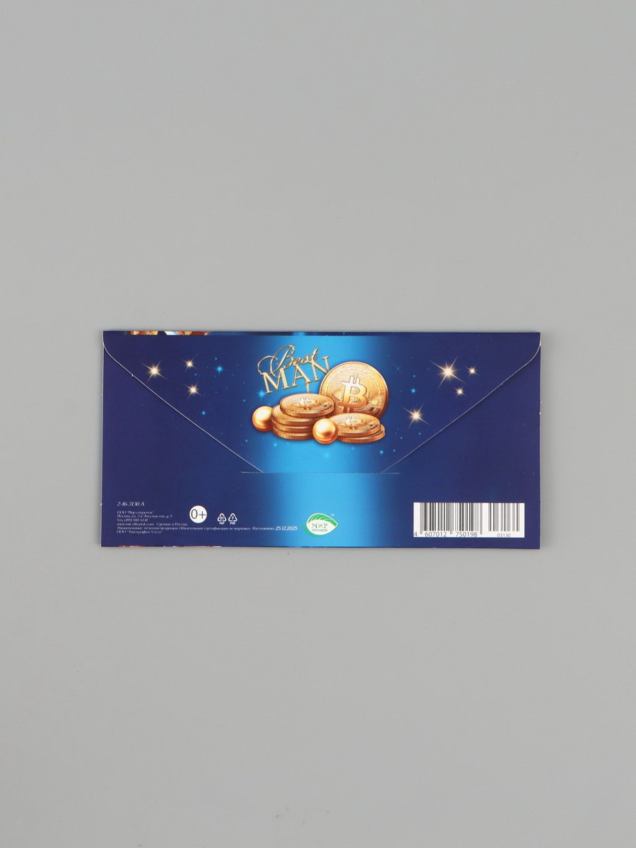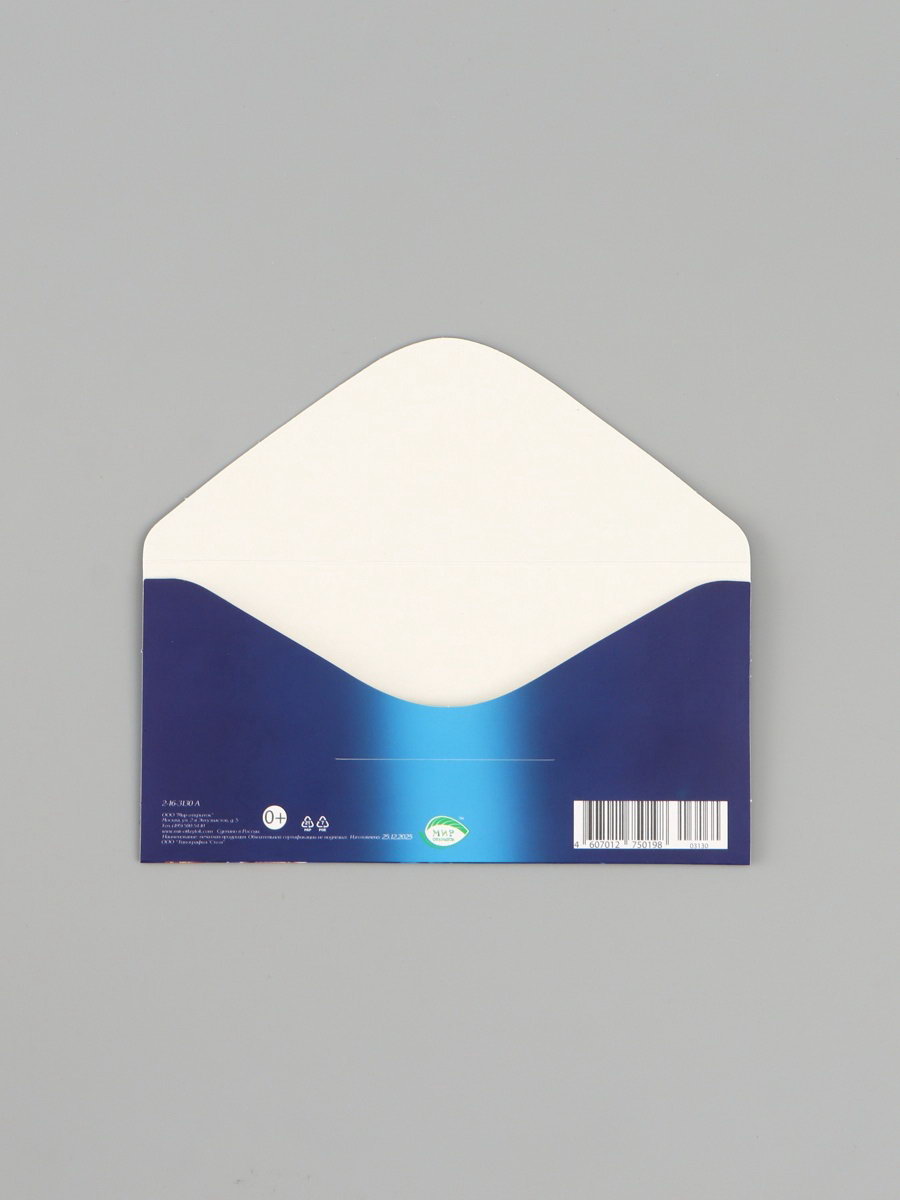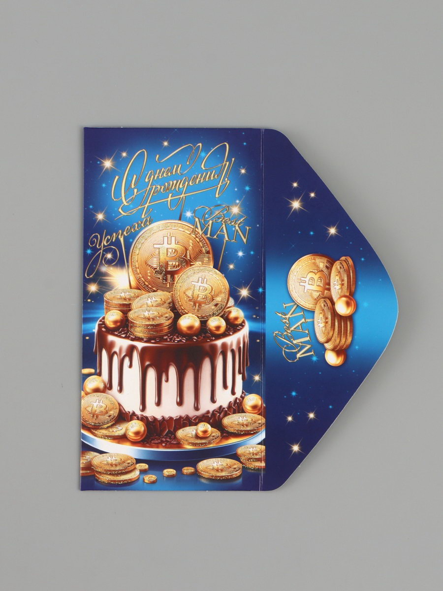 Конверт для денег "С днём рождения!", торт, синий, 16.5x8 см, Россия