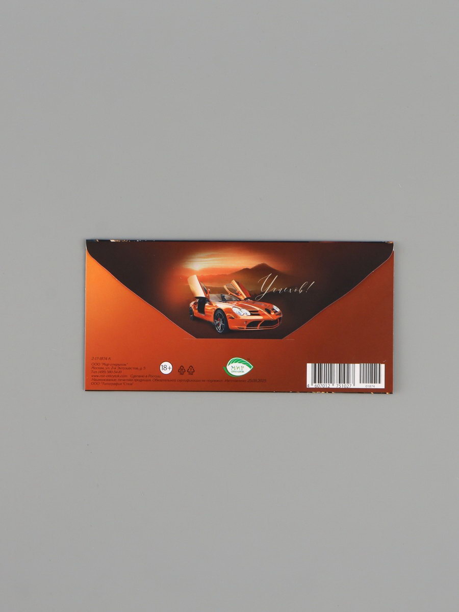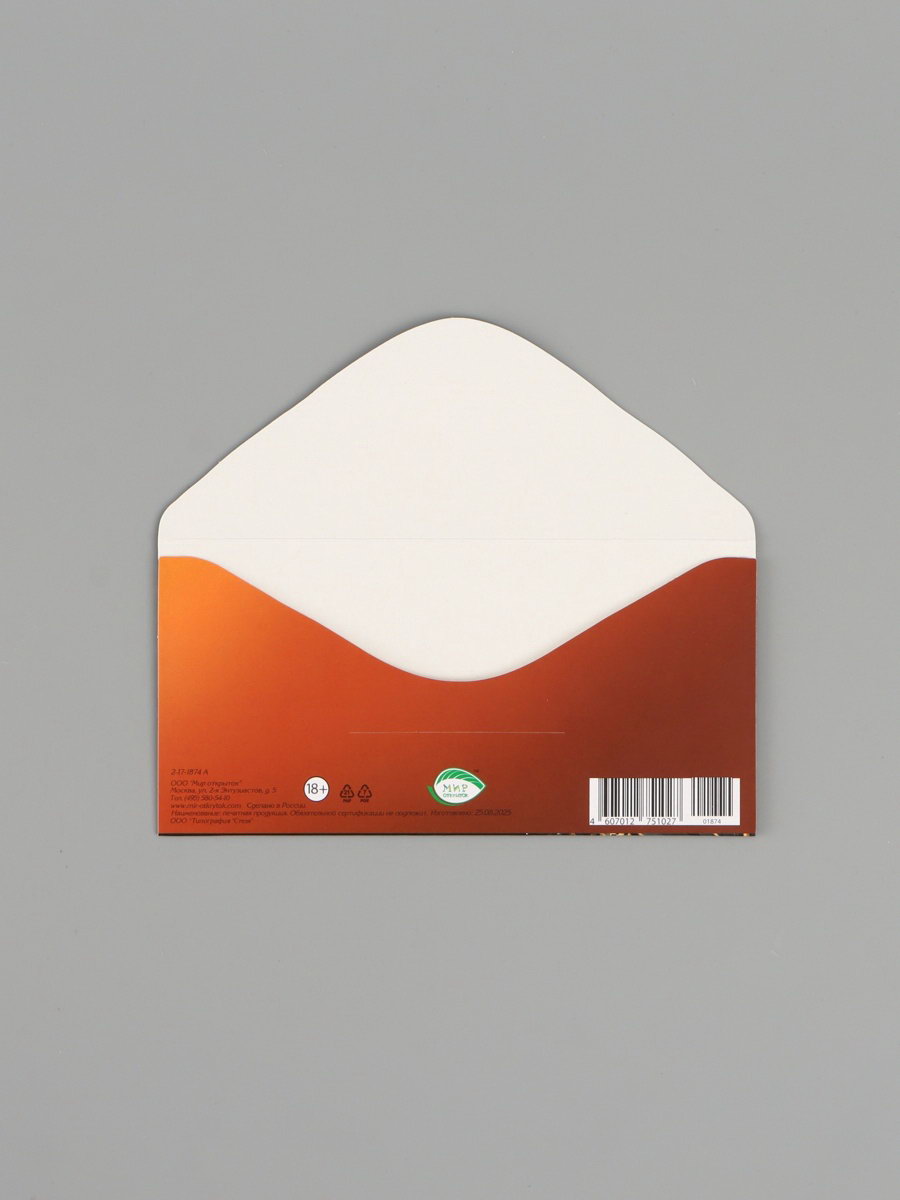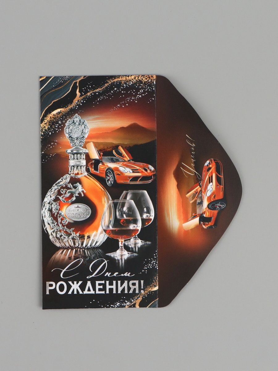 Конверт для денег "С Днем рождения!", чёрный/коричневый, 16.5x8 см, Россия