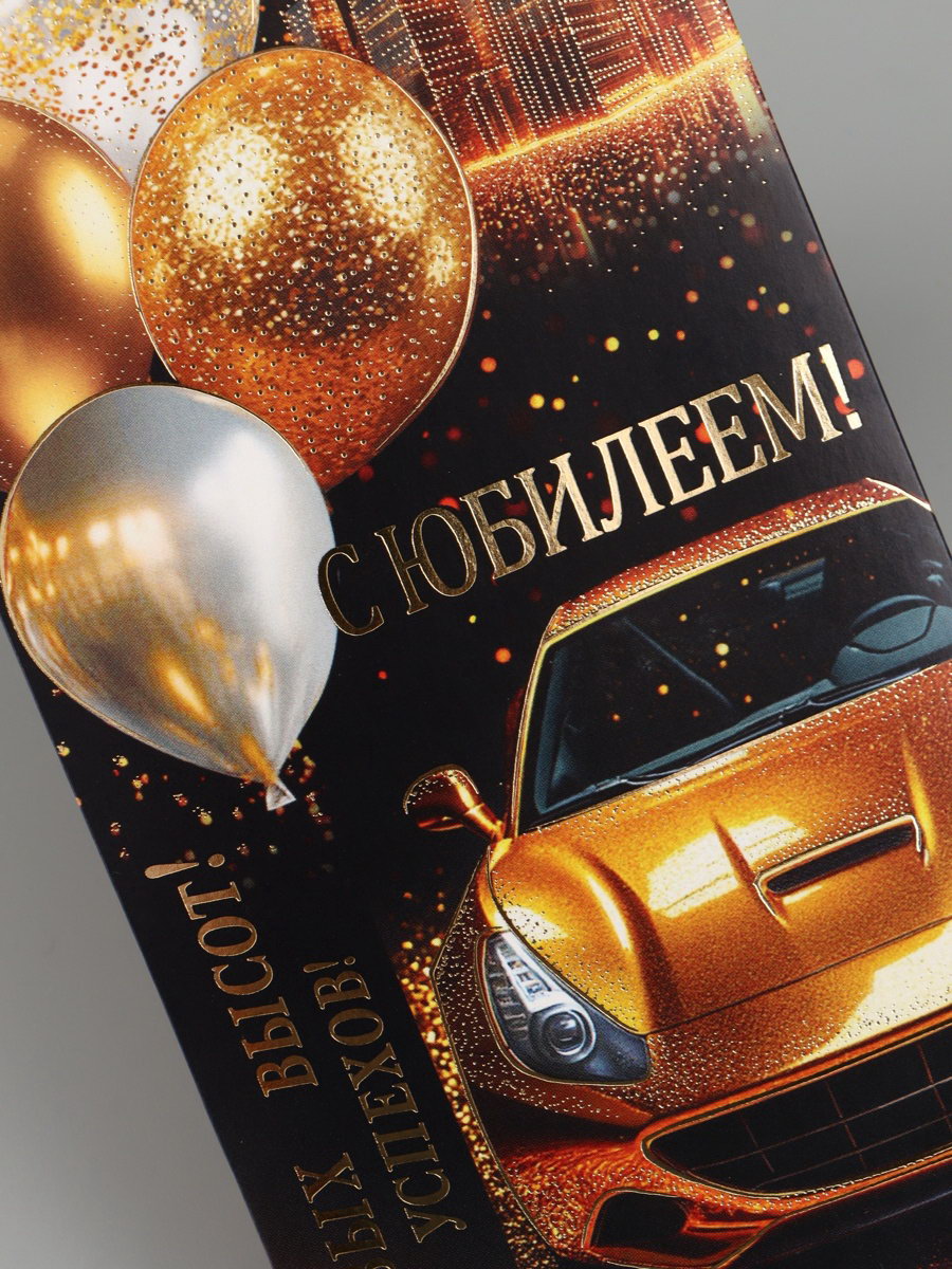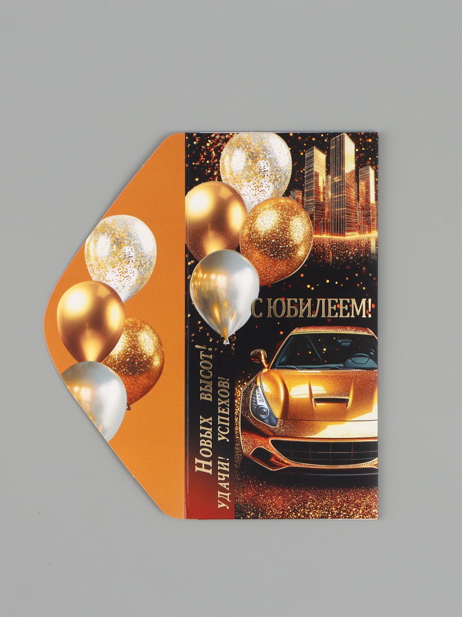 Конверт для денег "С юбилеем!", золотая машина, 16.5x8 см, Россия