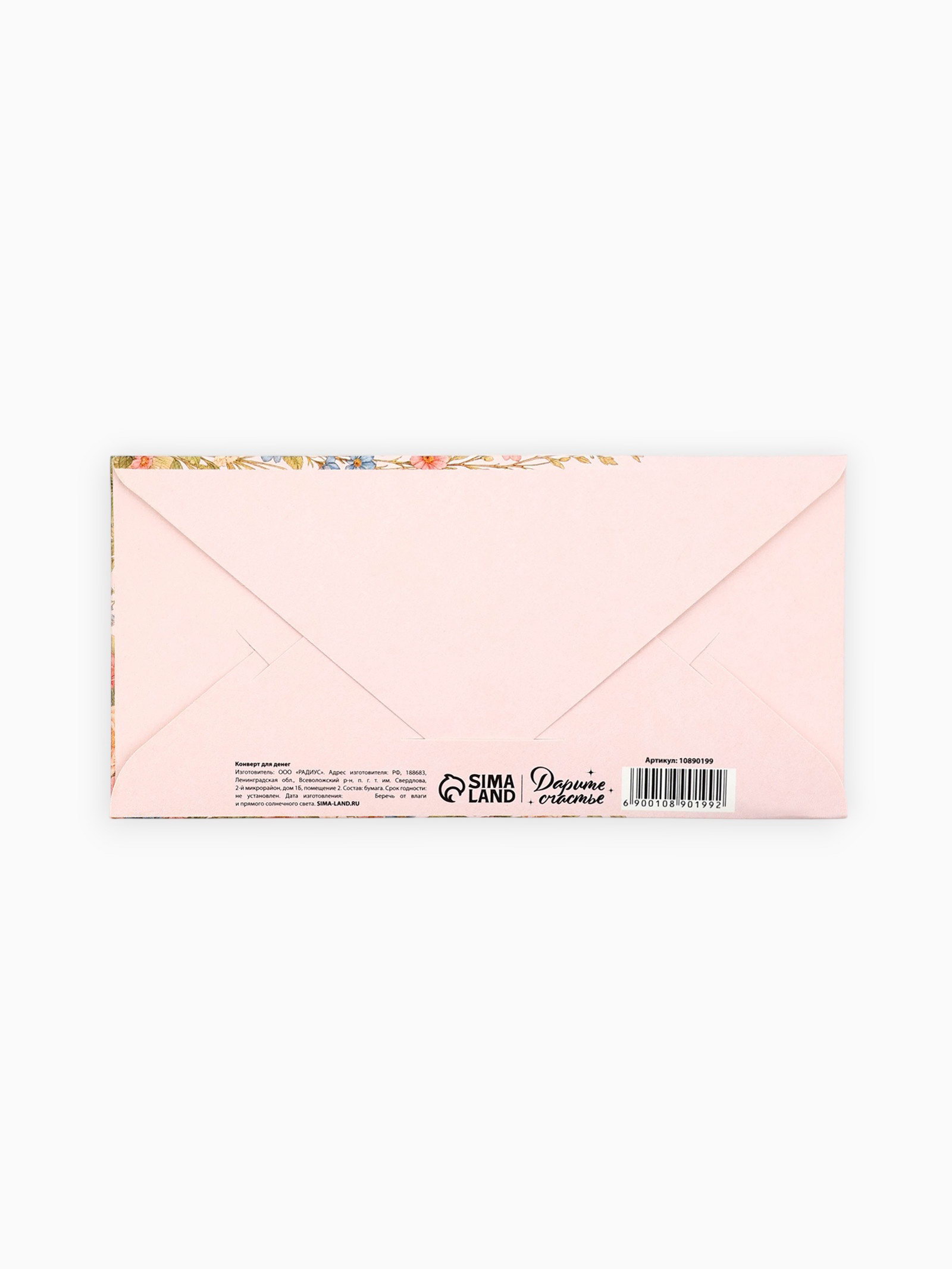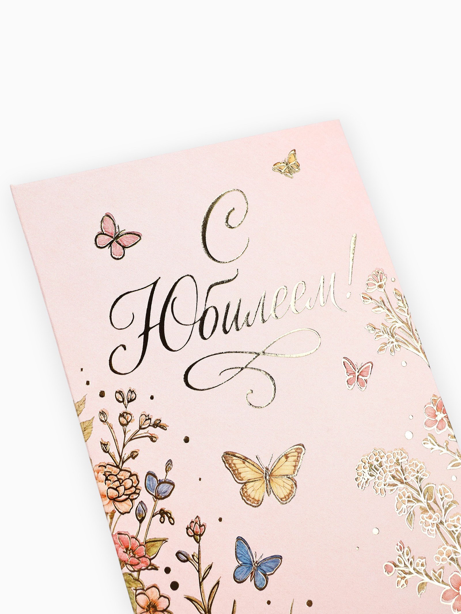 Конверт для денег "С Юбилеем!", цветы, тиснение, 16.5x8 см, Дарите Счастье, Россия