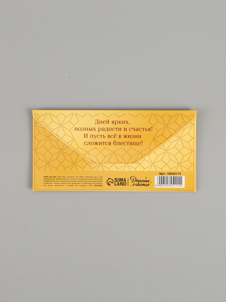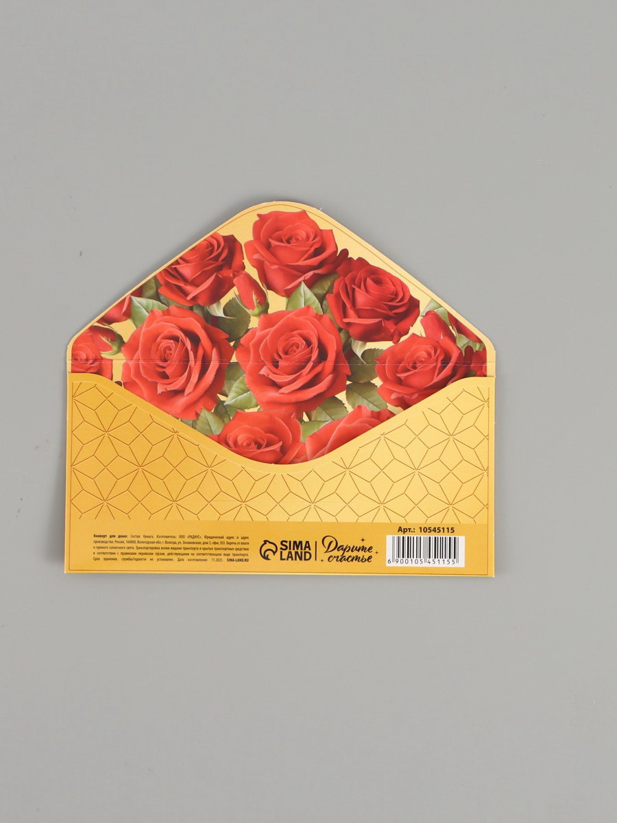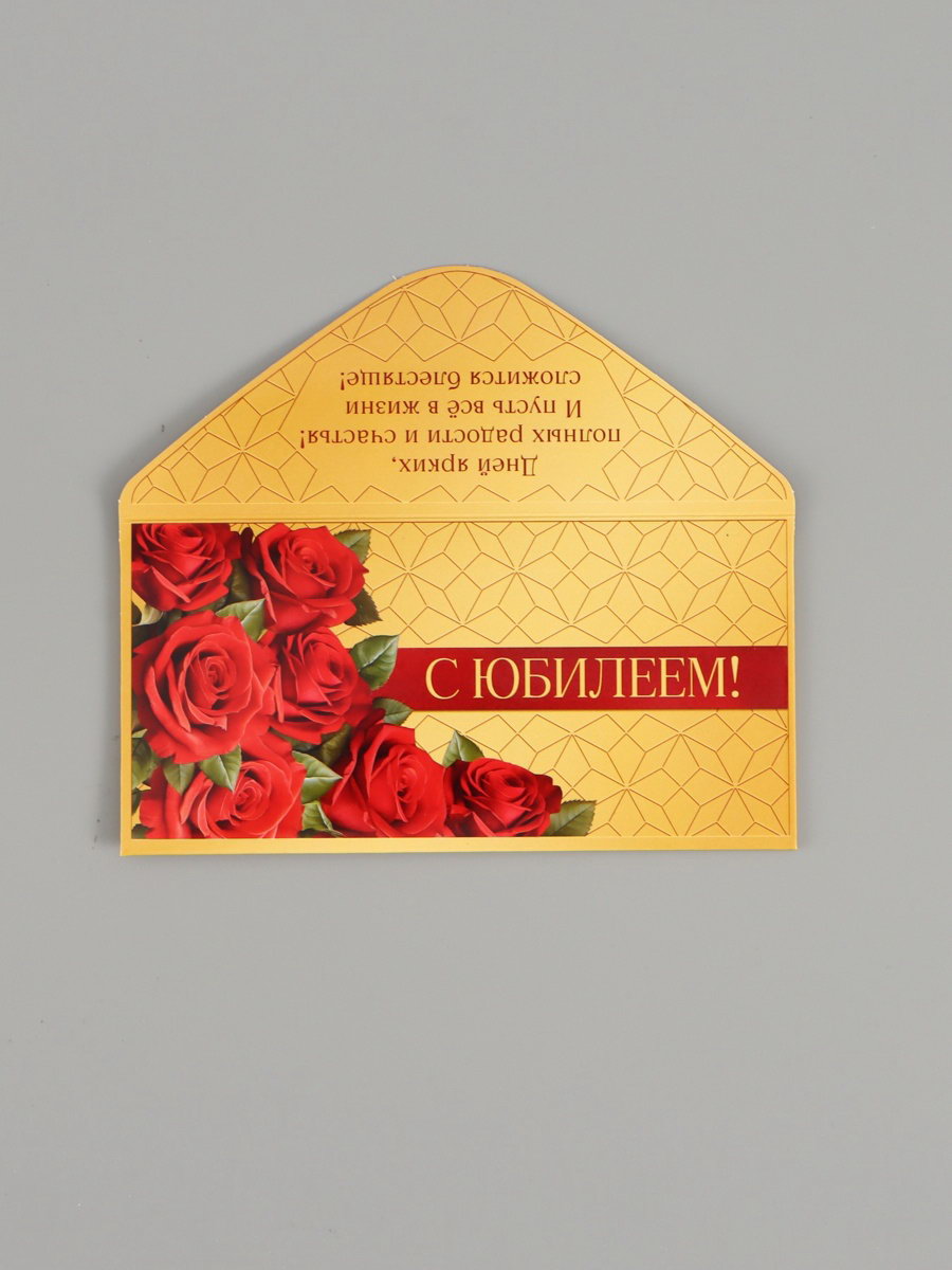 Конверт для денег "С юбилеем!", розы, двусторонний, 16.5 x 8 см, Дарите Счастье, Россия
