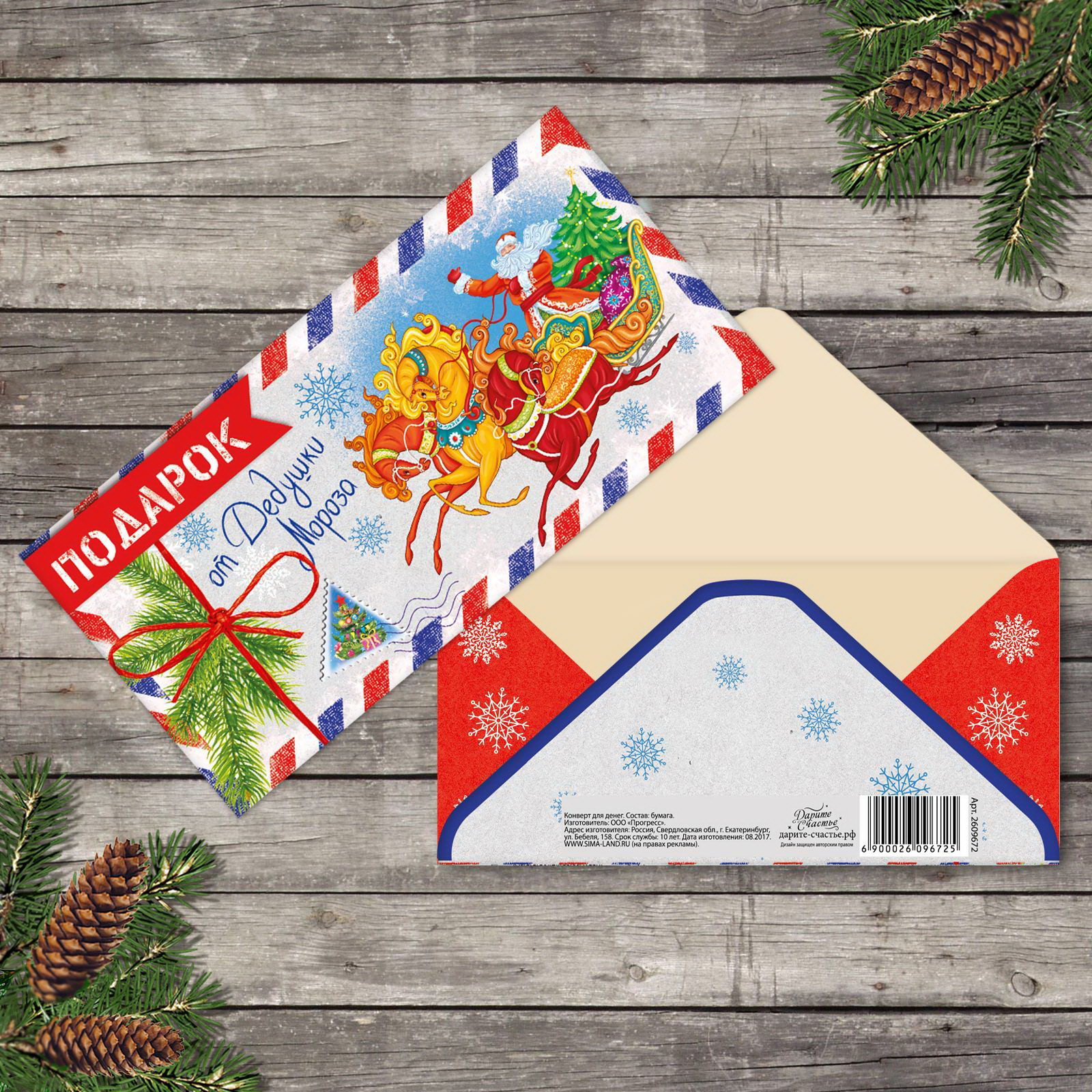 Конверт для денег "От дедушки мороза" 16.5 x 8 см, Дарите Счастье, Россия