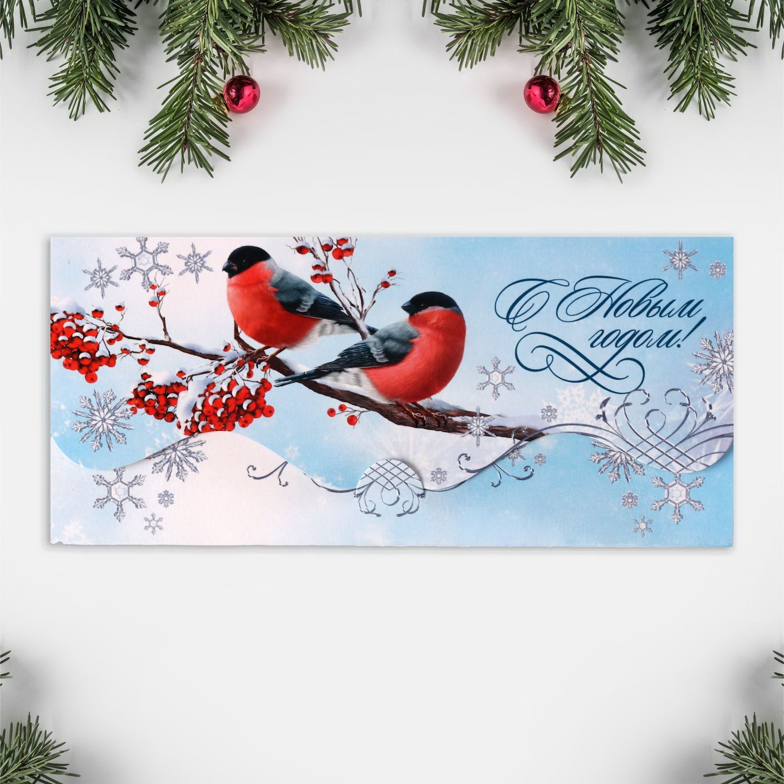 Конверт для денег фигурный "Новый год: Снегири", 17.5x8 см, Дарите Счастье, Россия