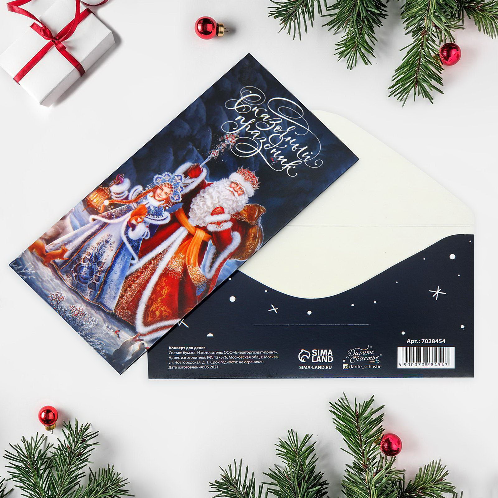 Конверт для денег "Дед Мороз и Снегурочка", 16.5x8 см, Дарите Счастье, Россия
