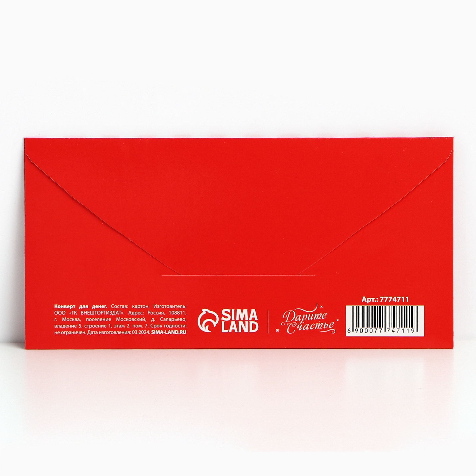Конверт для денег "Подарок от Деда Мороза", 16.5x8 см, Дарите Счастье, Россия
