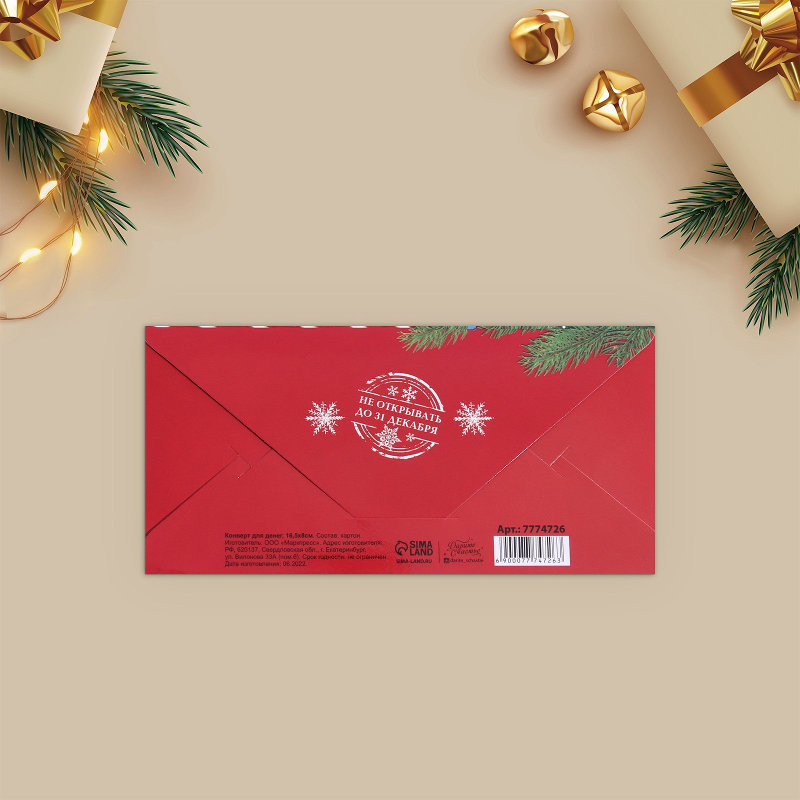 Конверт для денег "Новогодняя посылка", 16.5x8 см, Дарите Счастье, Россия