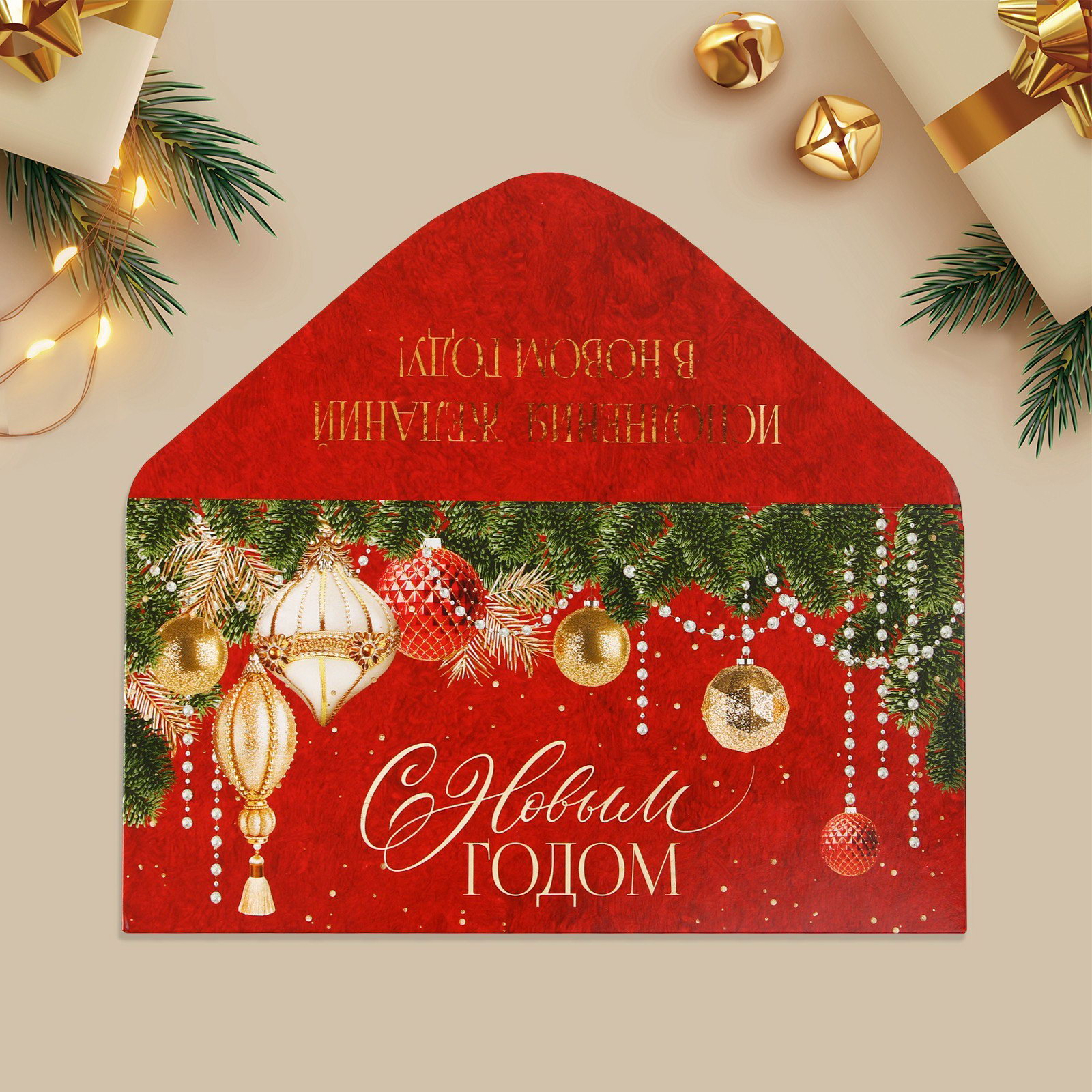 Конверт для денег "С Новым годом", 16.5x8 см, Дарите Счастье, Россия