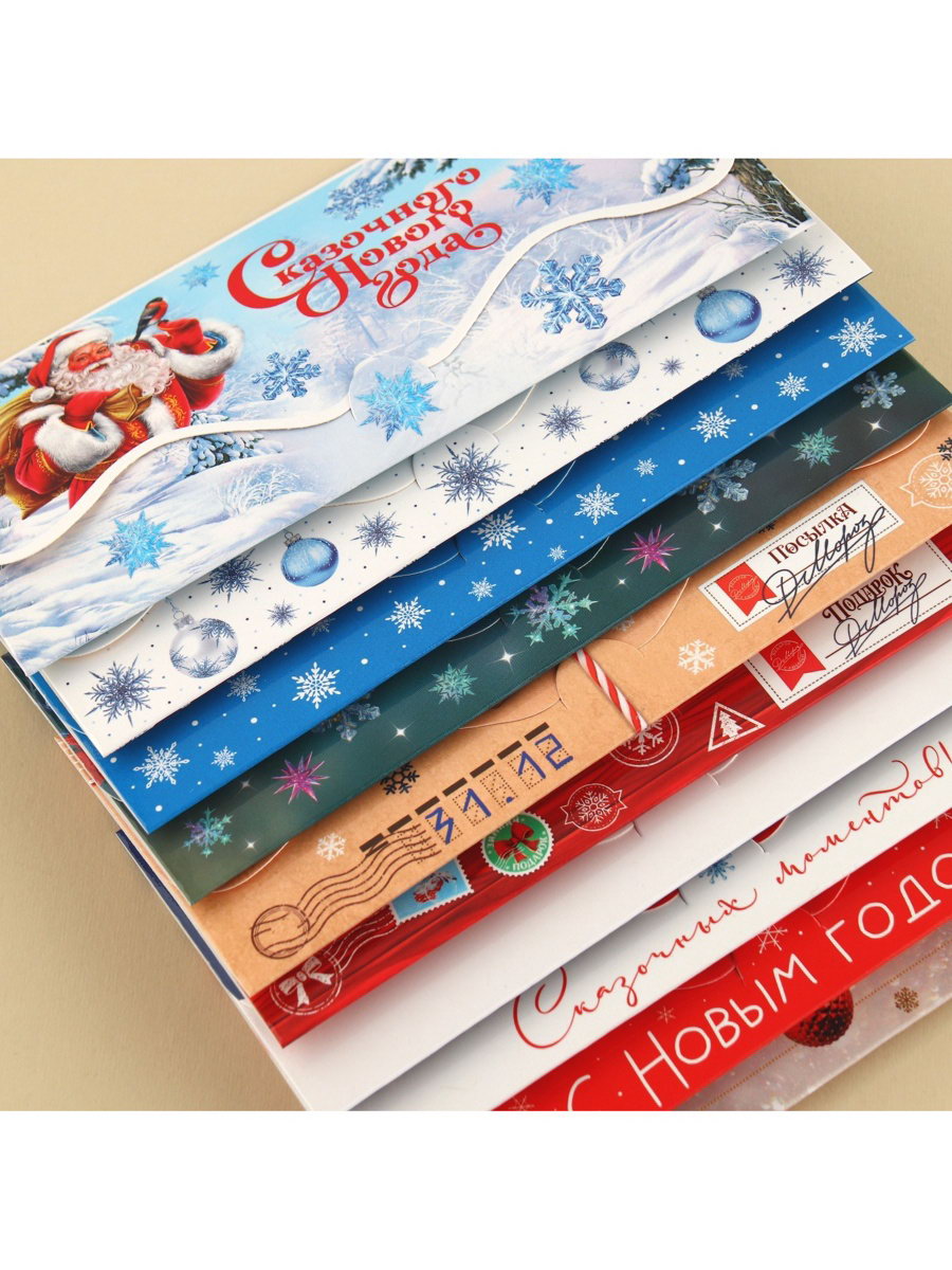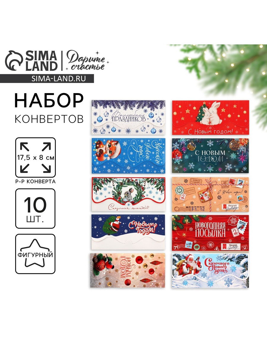 Набор фигурных конвертов для денег, 10 штук, "Новый год - семейный праздник", 17.5x8 см, Дарите Счастье, Россия