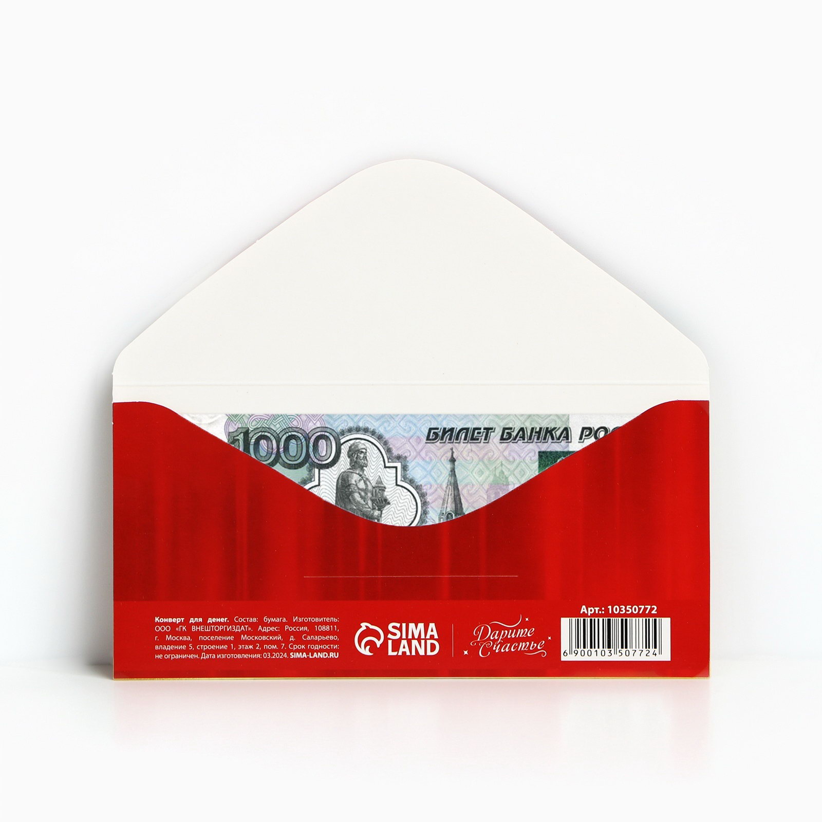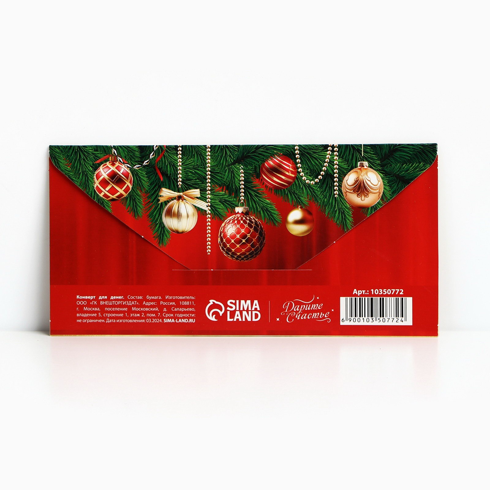 Конверт для денег "С Новым годом", 16.5 x 8 см, Дарите Счастье, Россия