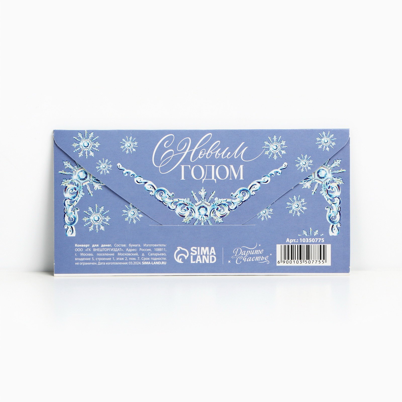 Конверт для денег "С Новым годом", тройка, 16.5x8 см, Дарите Счастье, Россия