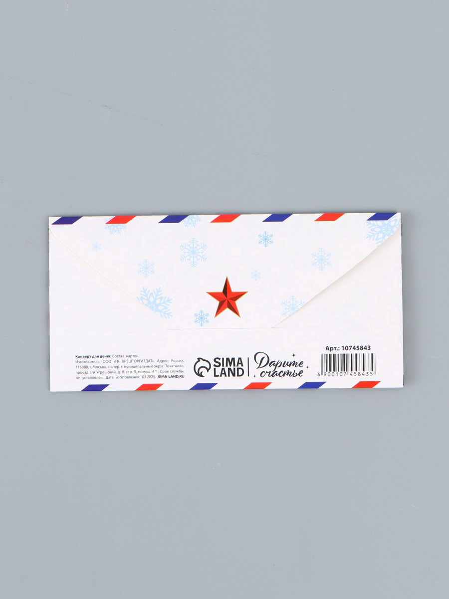 Конверт для денег "Исполнения желаний!" новогоднее письмо 16х8 см, Дарим Красиво, Россия