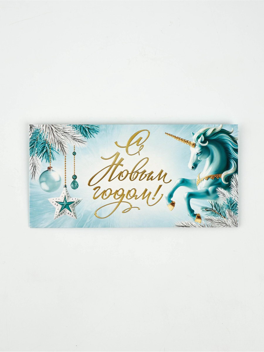 Конверт для денег "Новый год 2026", единорог, 16.5x8 см, Дарите Счастье, Россия