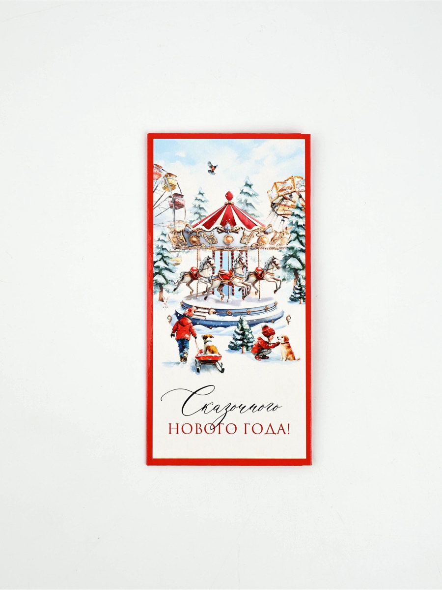 Конверт для денег "Новый год 2026", карусель из лошадей, 16.5x8 см, Дарите Счастье, Россия