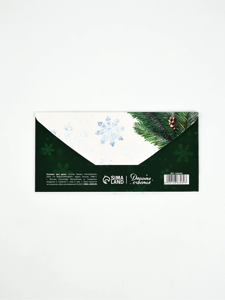 Конверт для денег "С Новым годом", 16.5x8 см, Дарите Счастье, Россия
