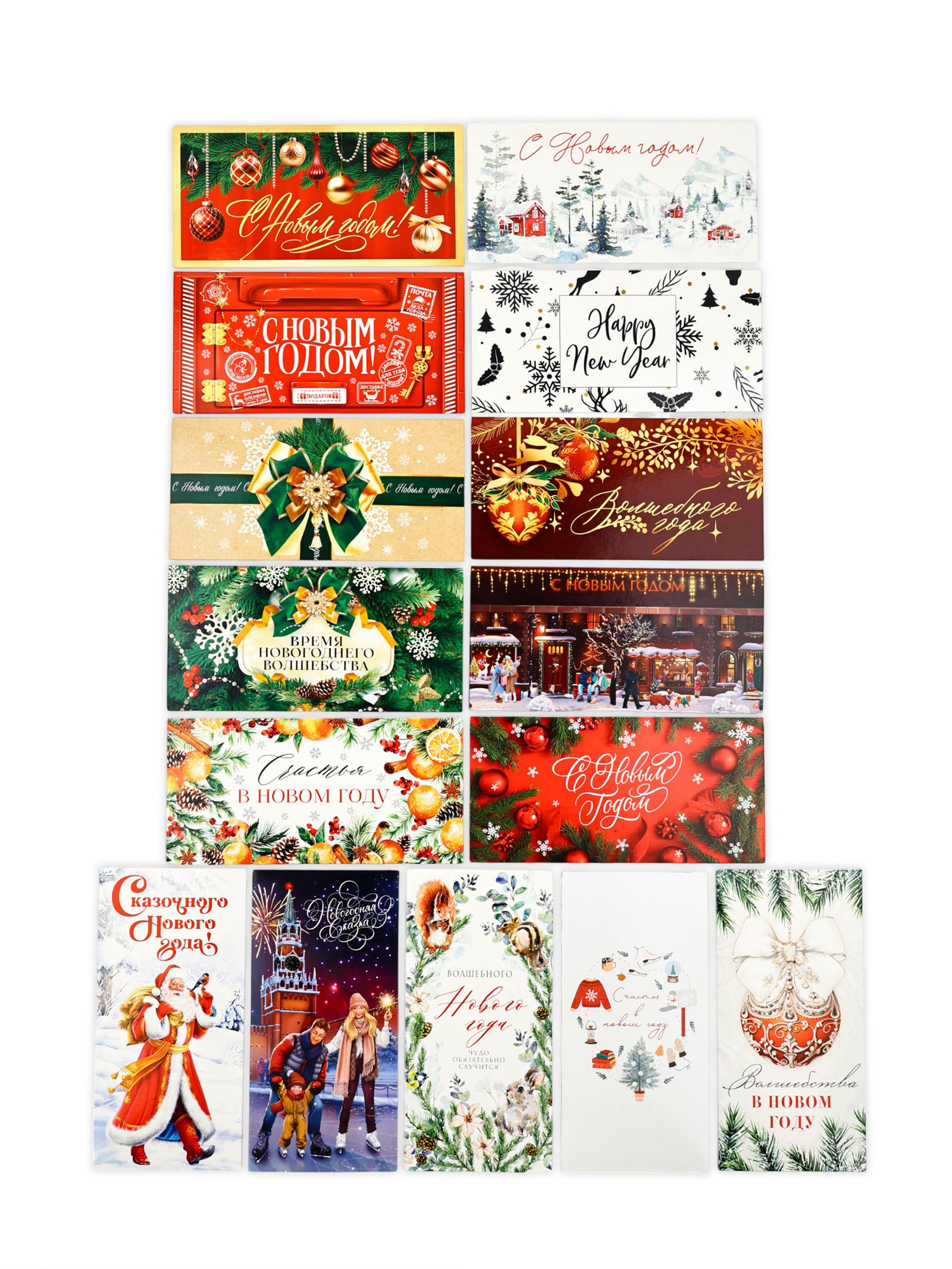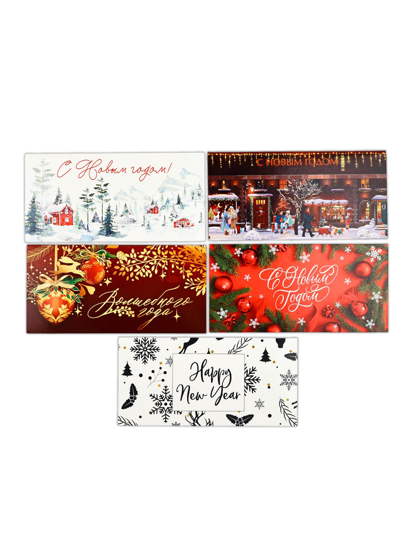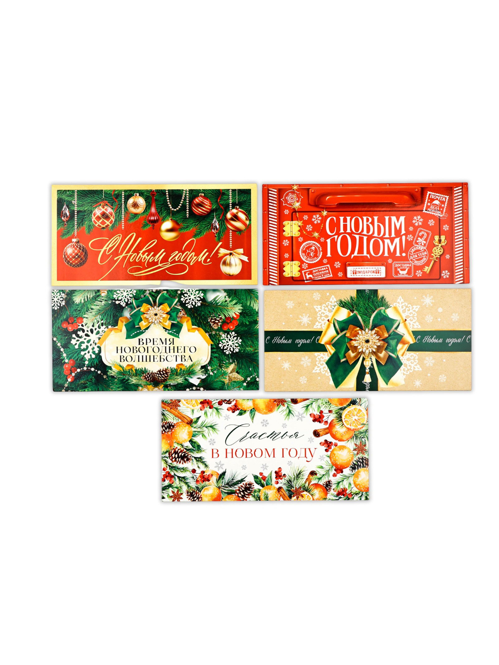 Конверты для денег новогодние "С праздником", набор 15 шт., 16.5x8 см, Дарите Счастье, Россия