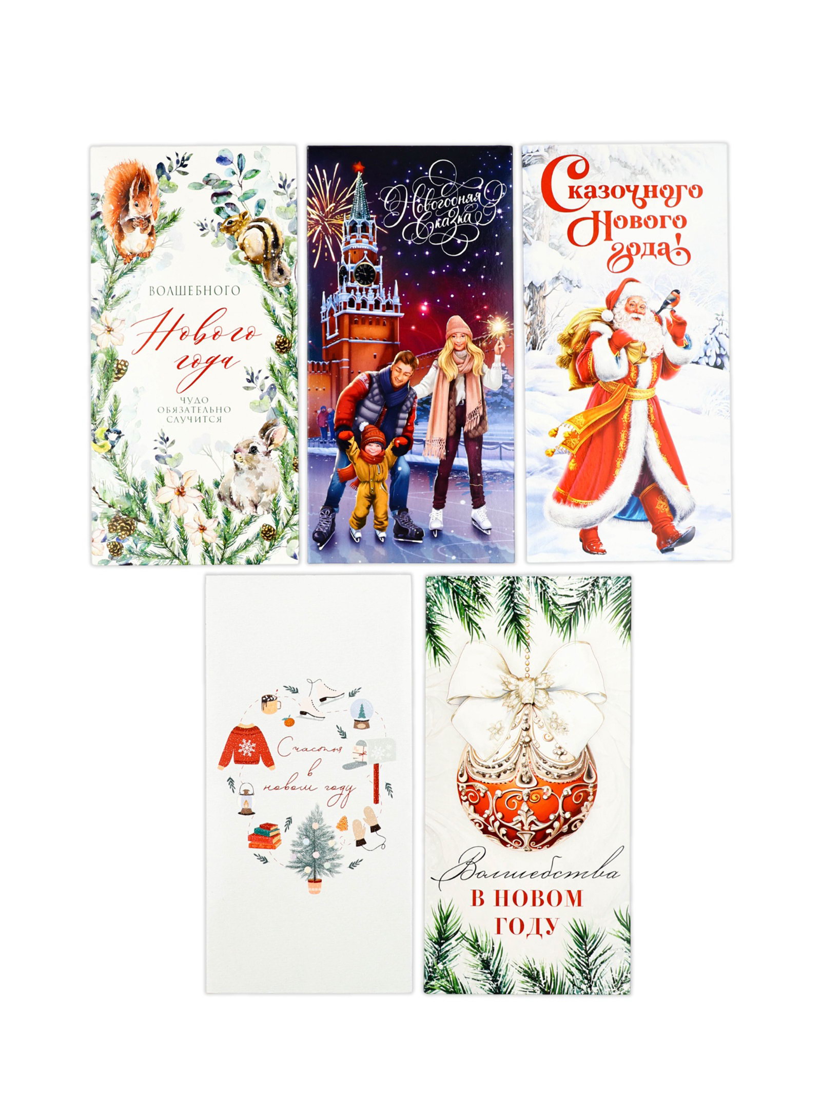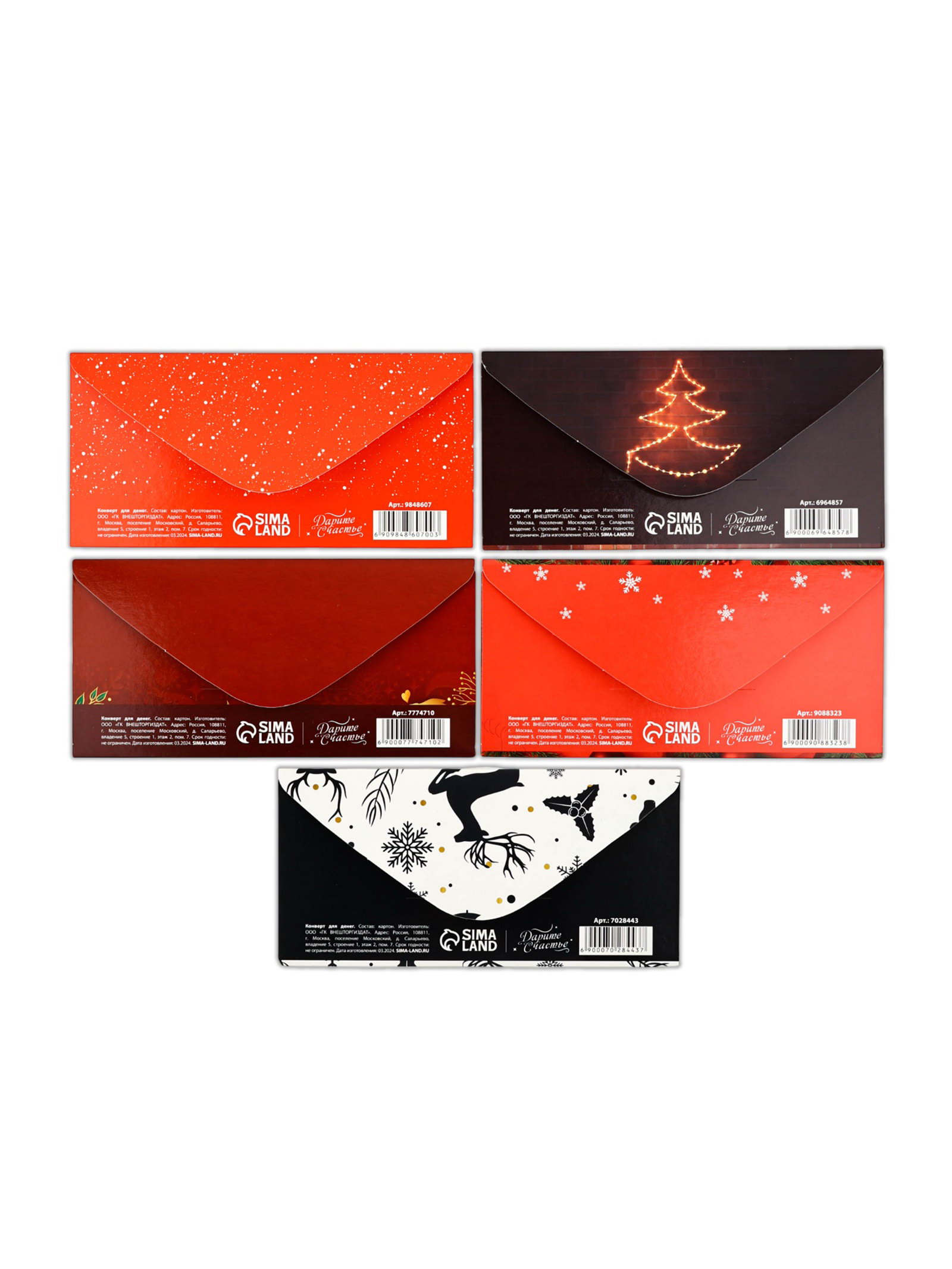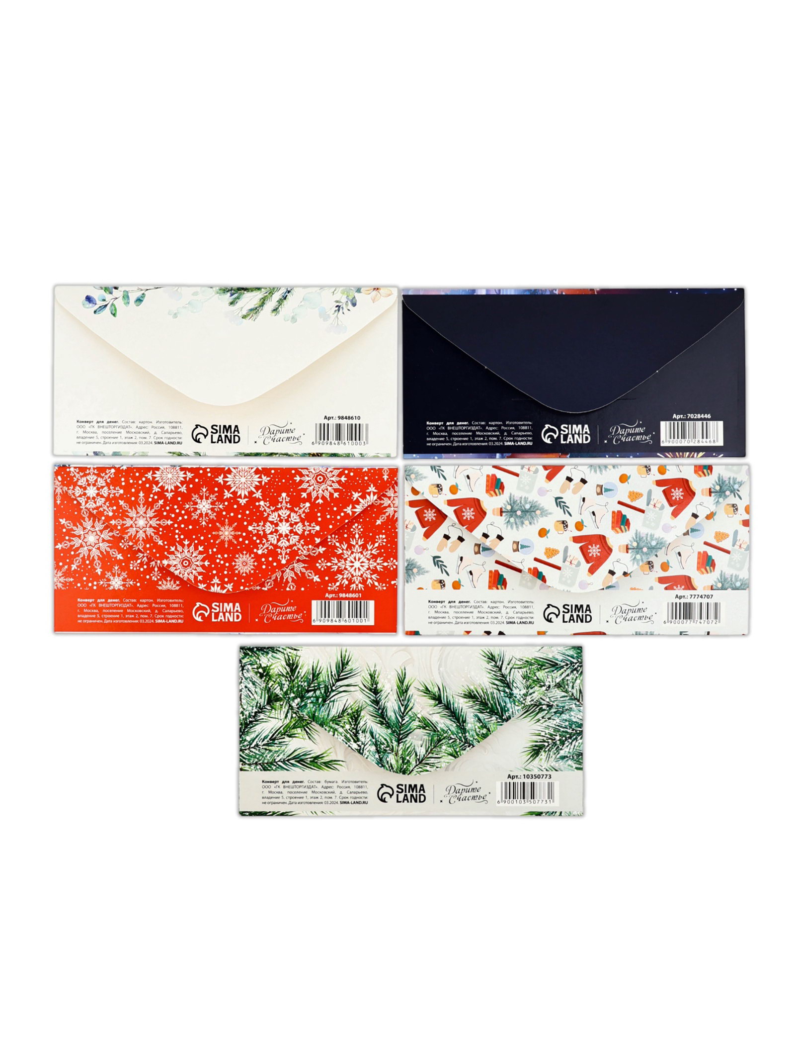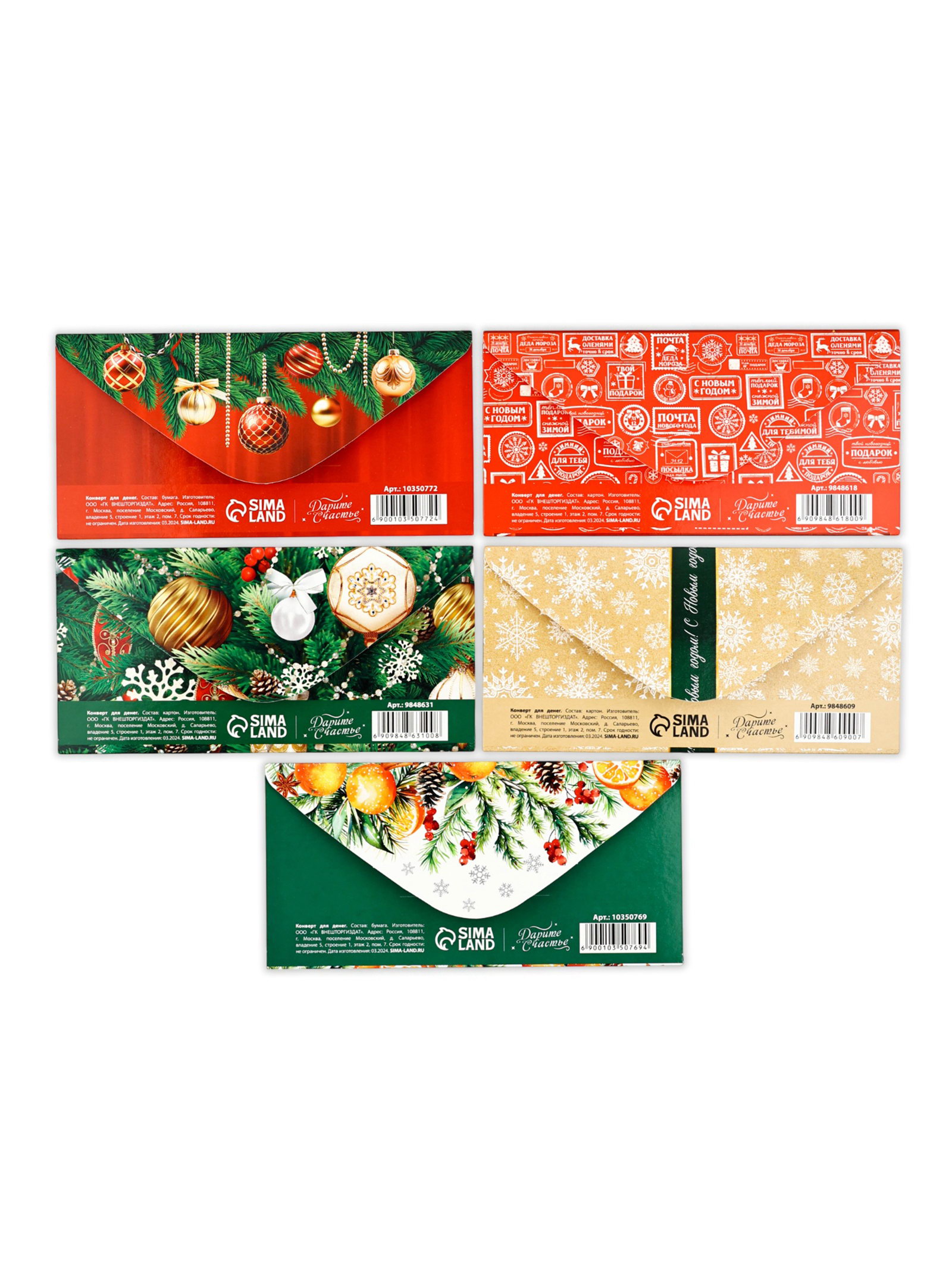 Конверты для денег новогодние "С праздником", набор 15 шт., 16.5x8 см, Дарите Счастье, Россия