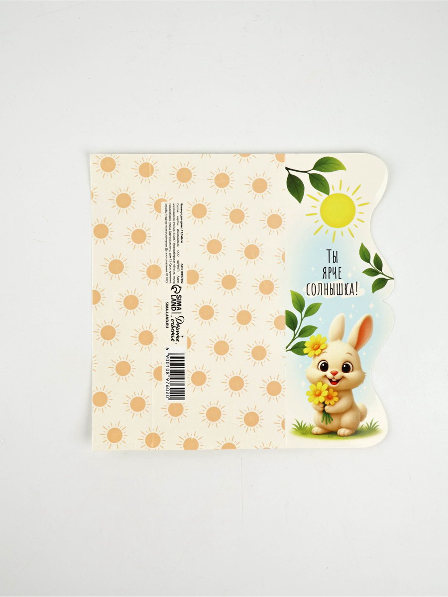 Конверт для денег фигурный "Ты ярче солнышка!", зайчик, 17.5x8 см, Дарите Счастье, Россия