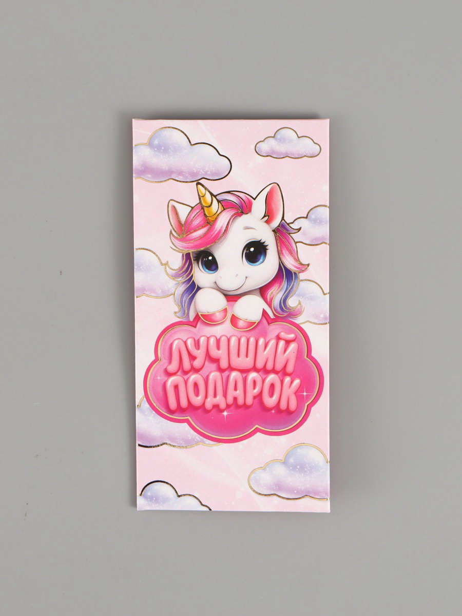 Конверт для денег "Лучший подарок", единорог, тиснение 16.5 x 8 см, Дарите Счастье, Россия