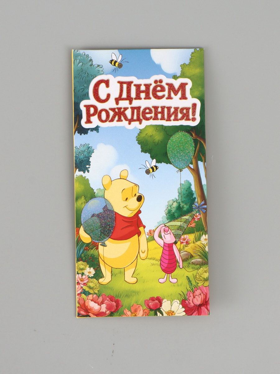 Конверт для денег "С днём рождения", глиттер 16.5 x 8 см, Disney, Китай