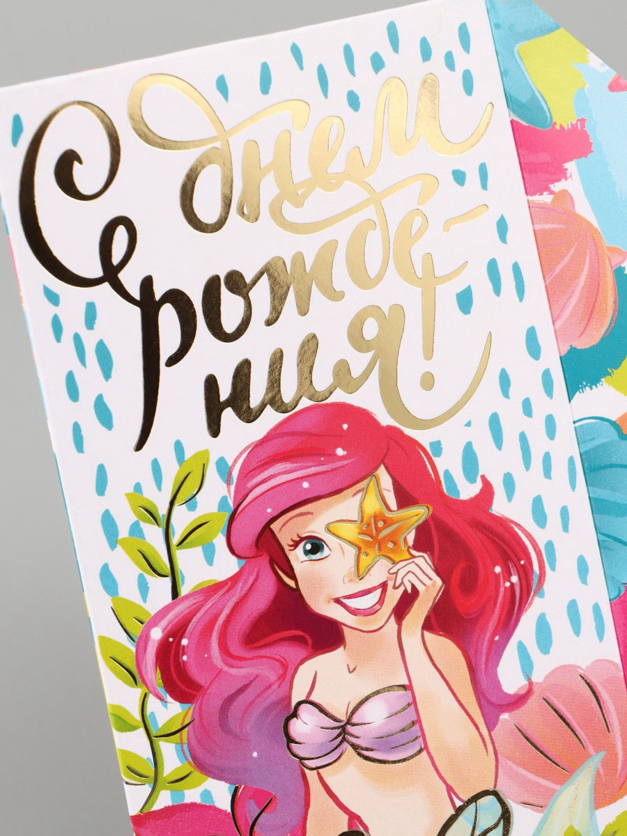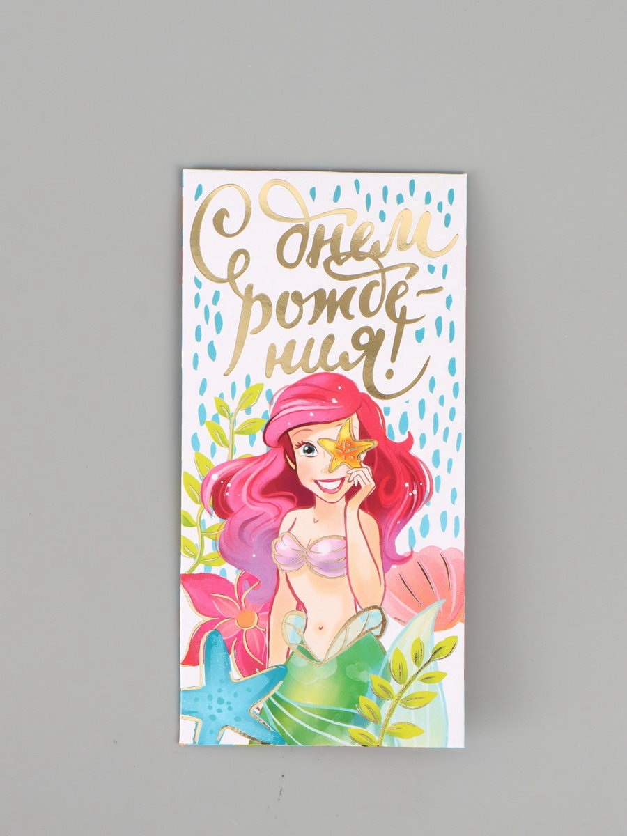 Конверт для денег "С днём рождения", принцесса, тиснение 16.5 x 8 см, Disney, Китай