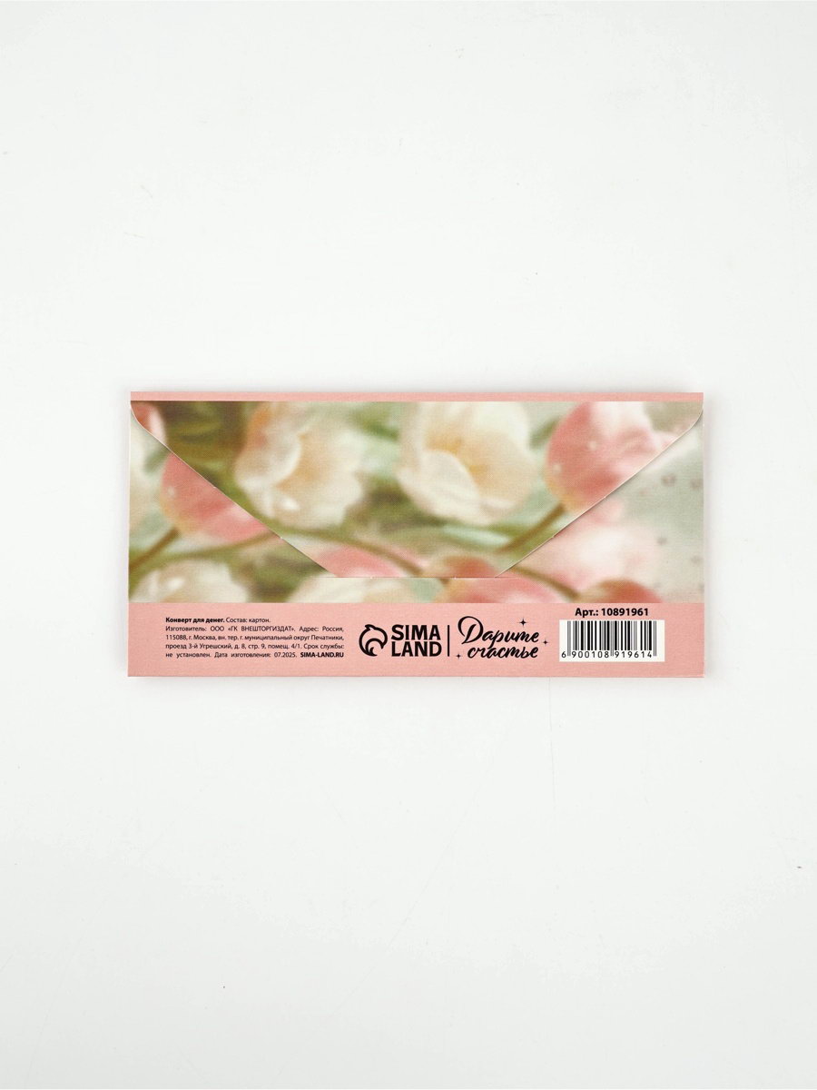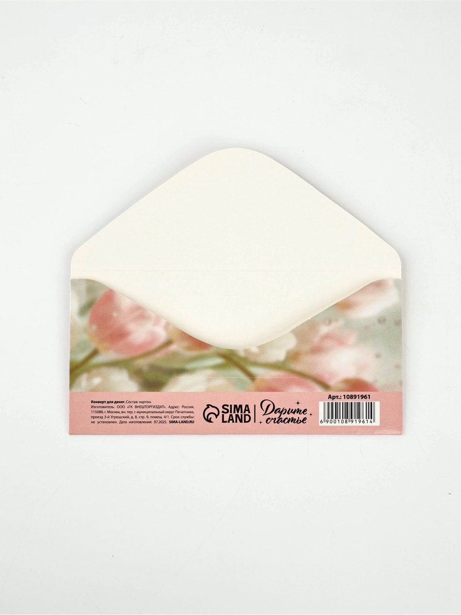 Конверт для денег "Нежность", 16.5x8 см, Дарите Счастье, Россия