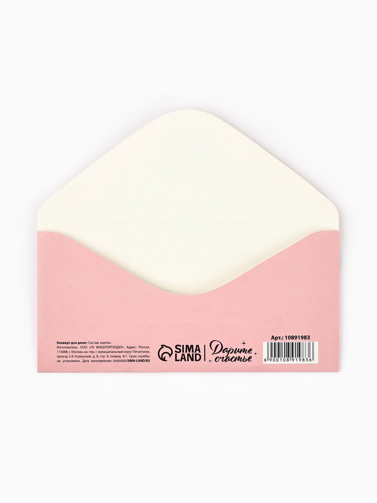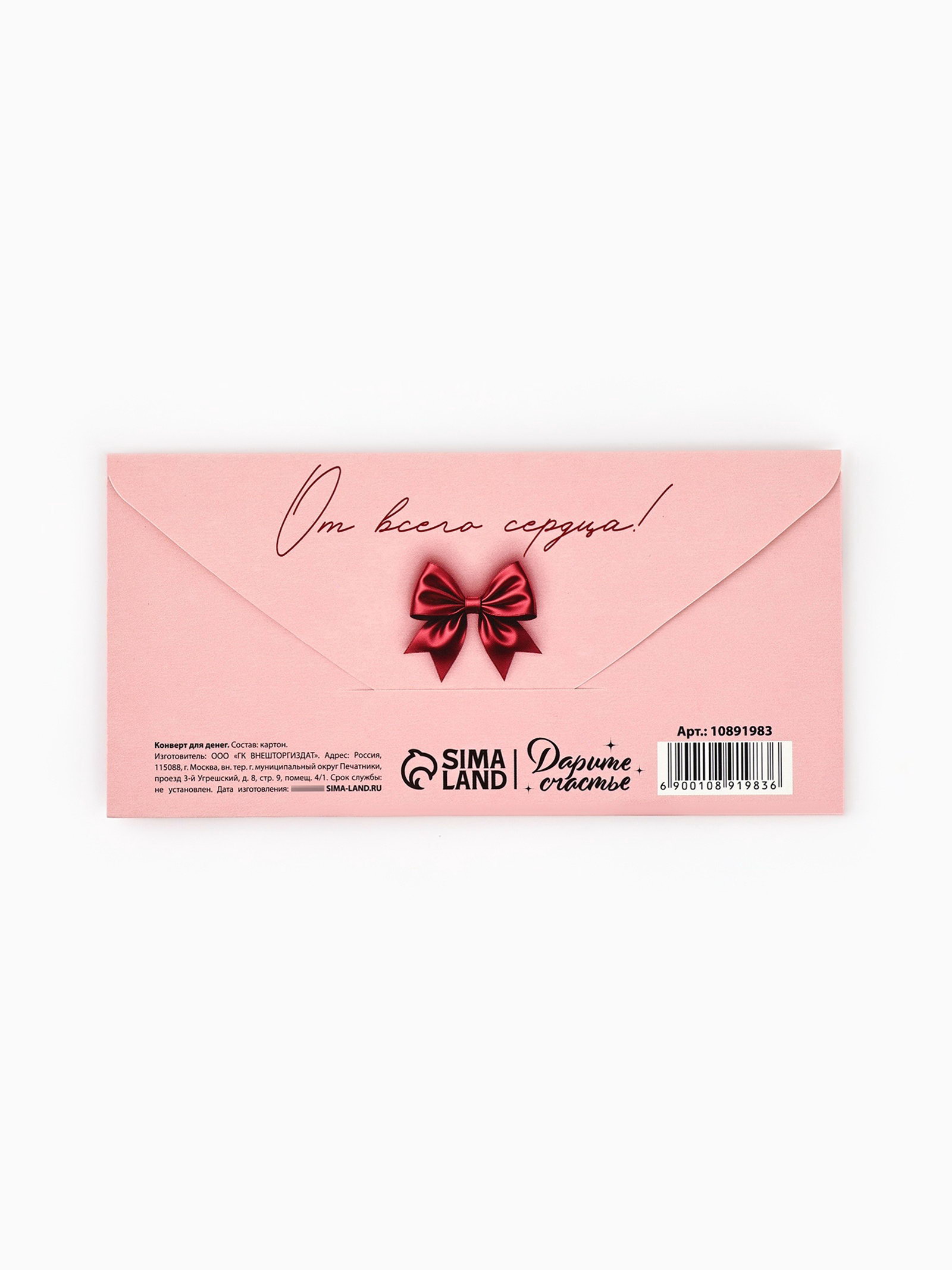 Конверт для денег "Самой прекрасной", 16.5x8 см, Дарите Счастье, Россия