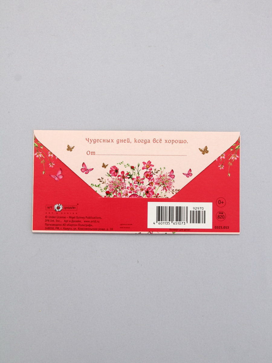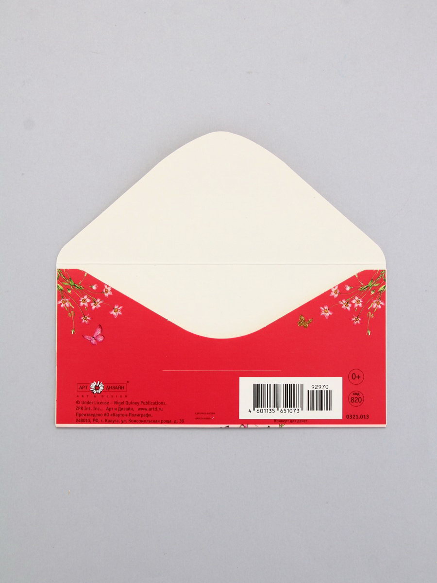 Конверт для денег "От всей души", бант, 16.5 x 8 см, Россия