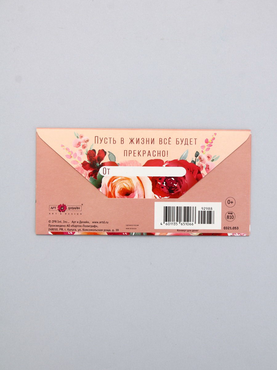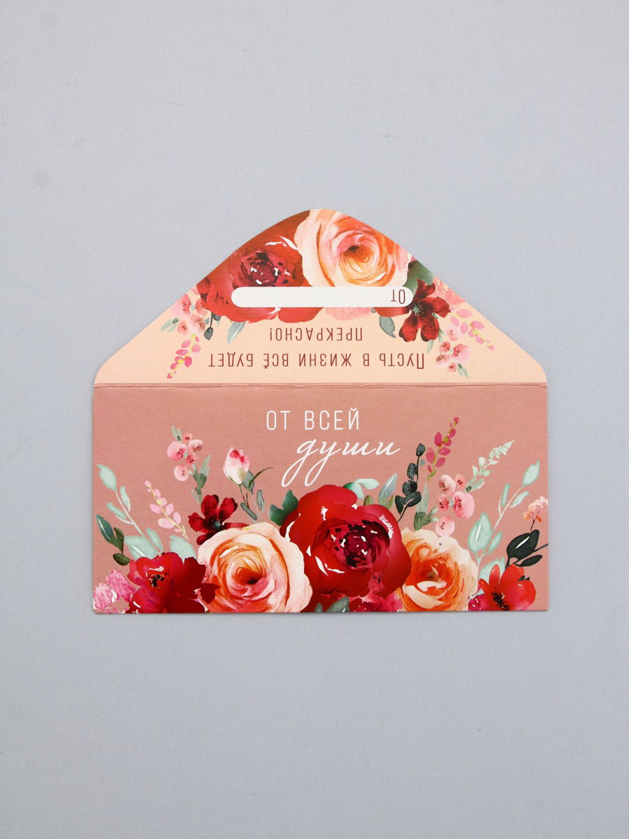 Конверт для денег "От всей души", на розовом, 16.5 x 8 см, Россия