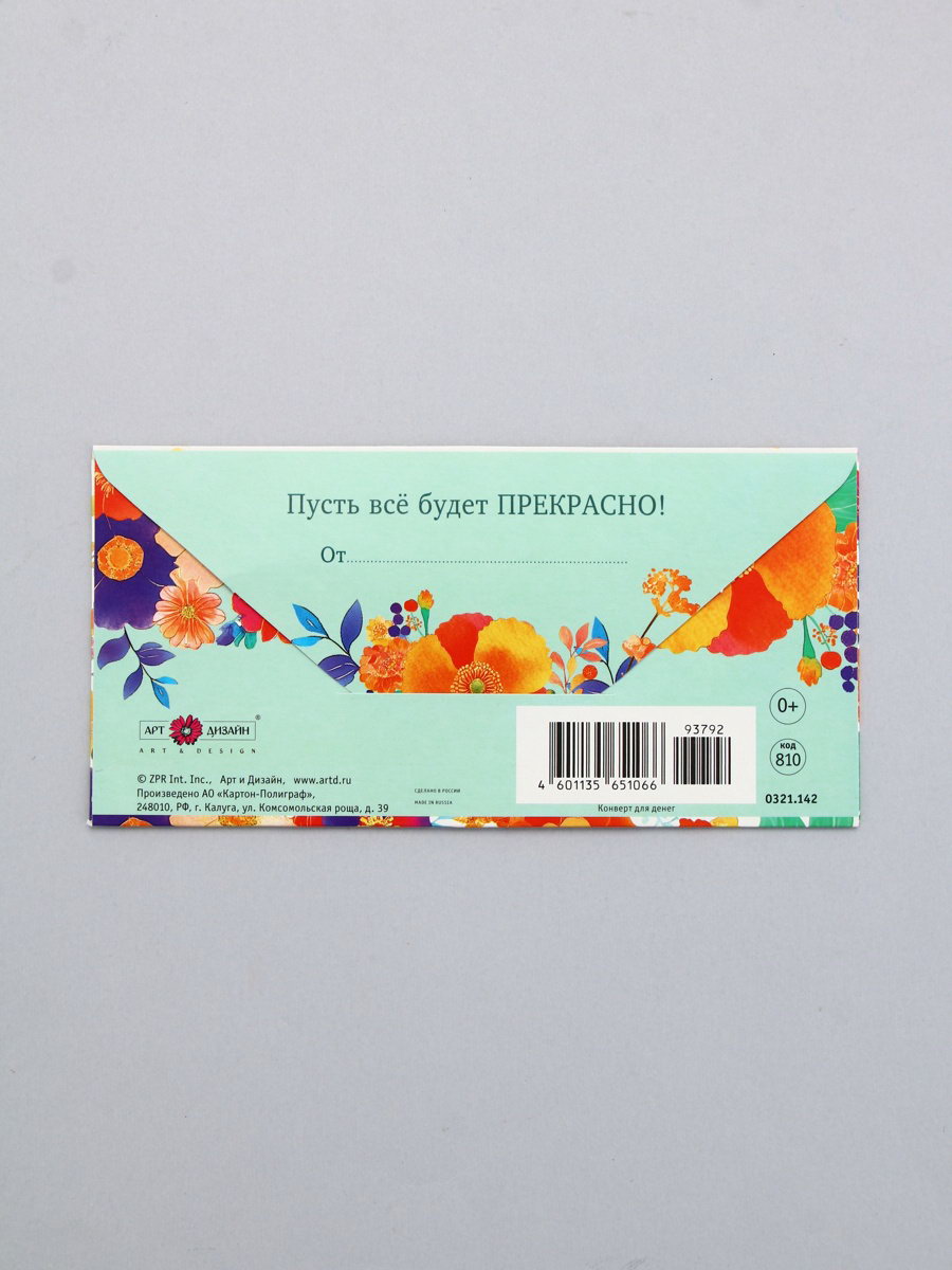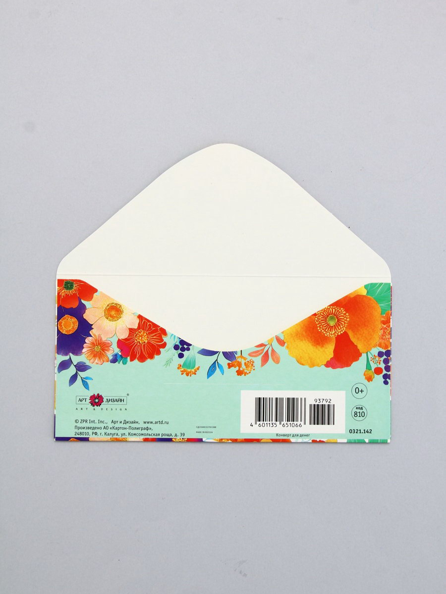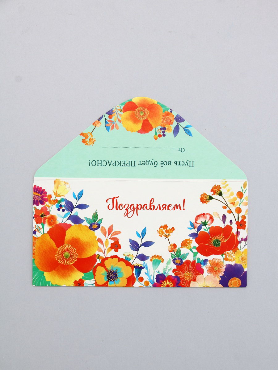 Конверт для денег "Поздравляем!", яркие цветы, 16.5 x 8 см, Россия
