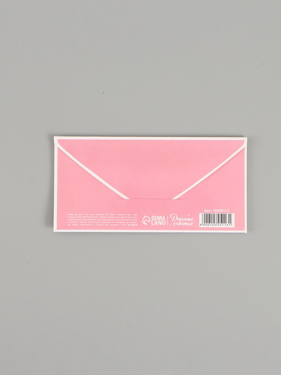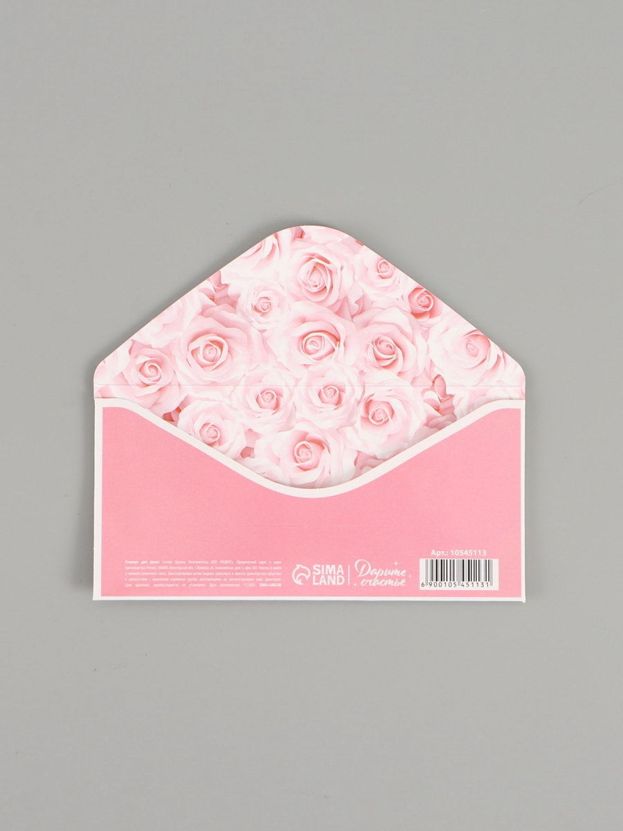 Конверт для денег "От всего сердца!", розовые розы, двусторонний, 16.5 x 8 см, Дарите Счастье, Россия