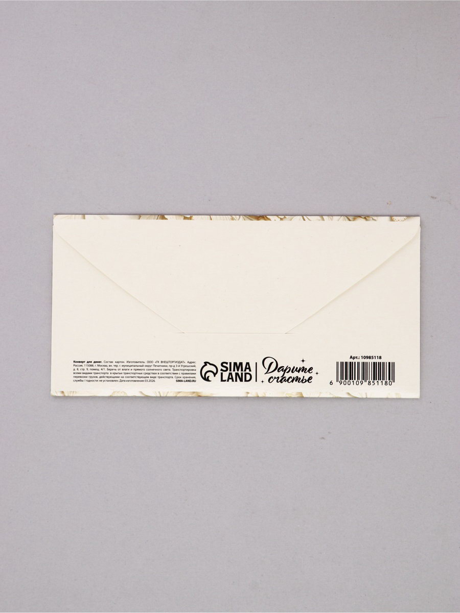 Конверт для денег "Для тебя", 16.5x8 см, Дарите Счастье, Россия