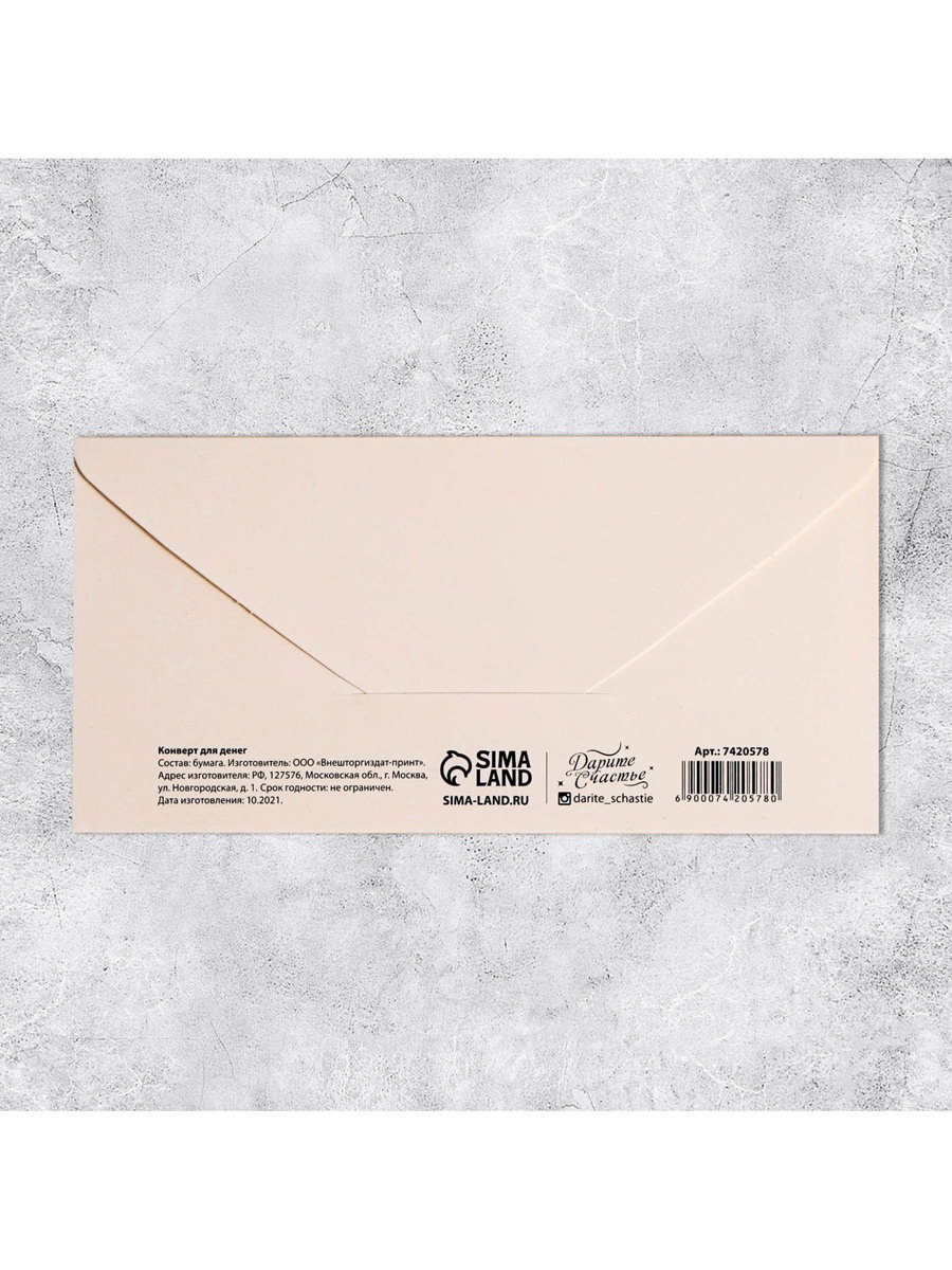 Конверт для денег "Побалуй себя", 16.5x8 см, Дарите Счастье, Россия