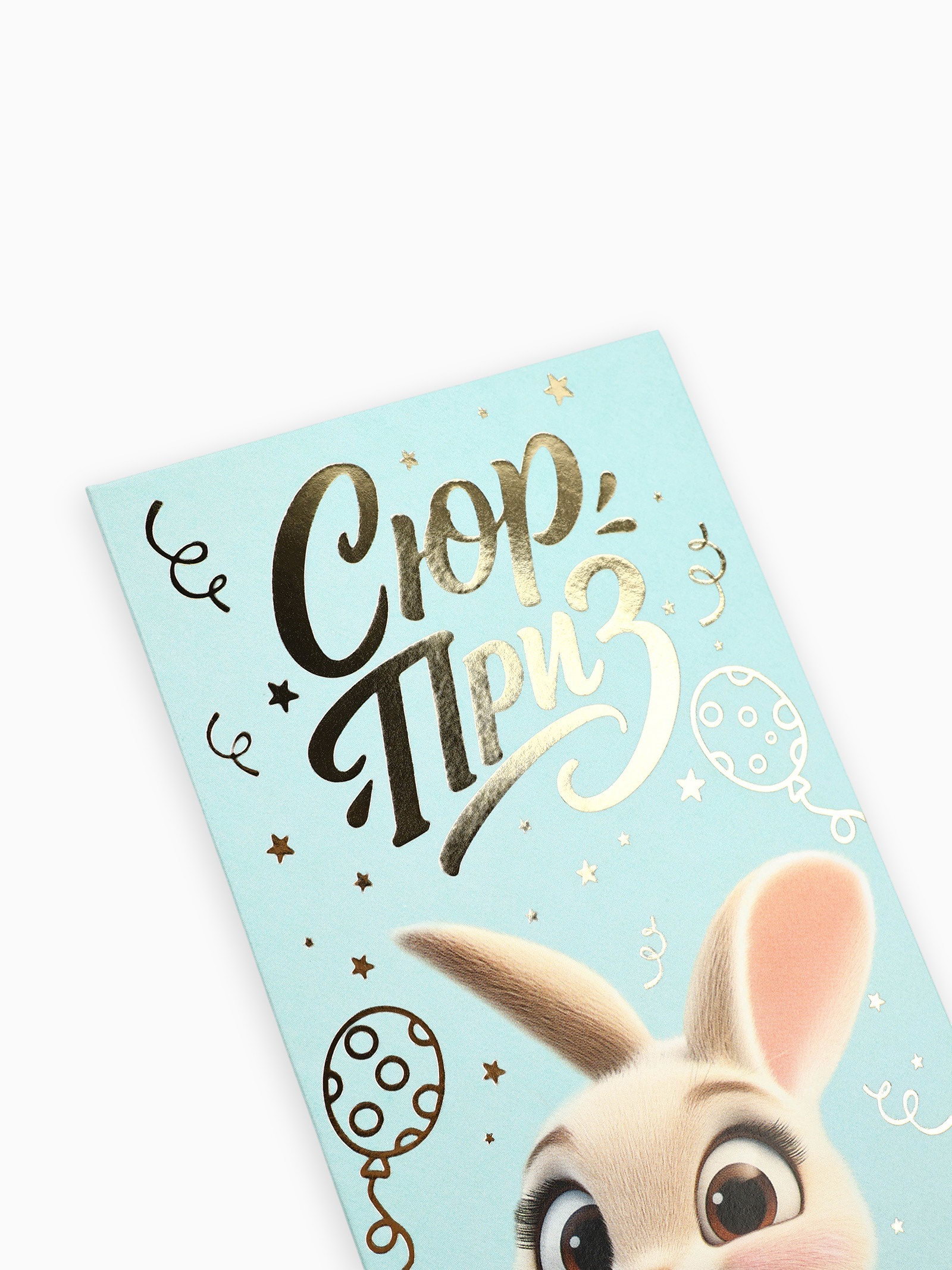 Конверт для денег "Сюрприз", зайчик, тиснение, 16.5x8 см, Дарите Счастье, Россия