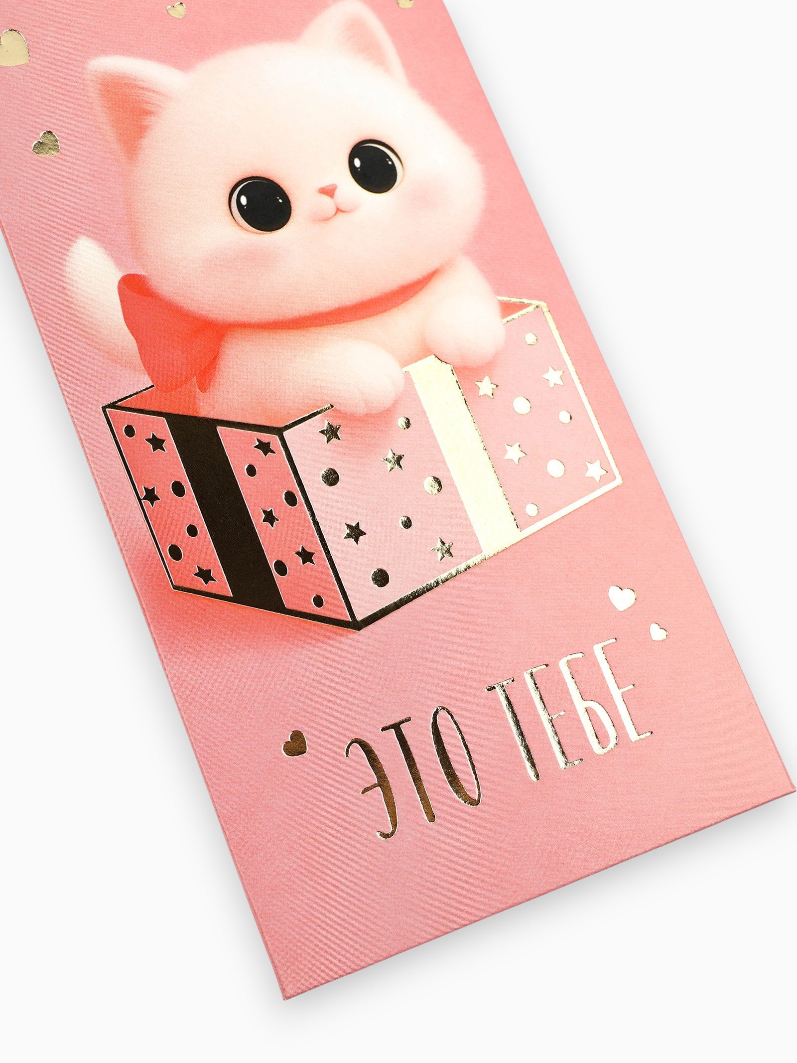 Конверт для денег "Это тебе", котик, тиснение, 16.5x8 см, Дарите Счастье, Россия