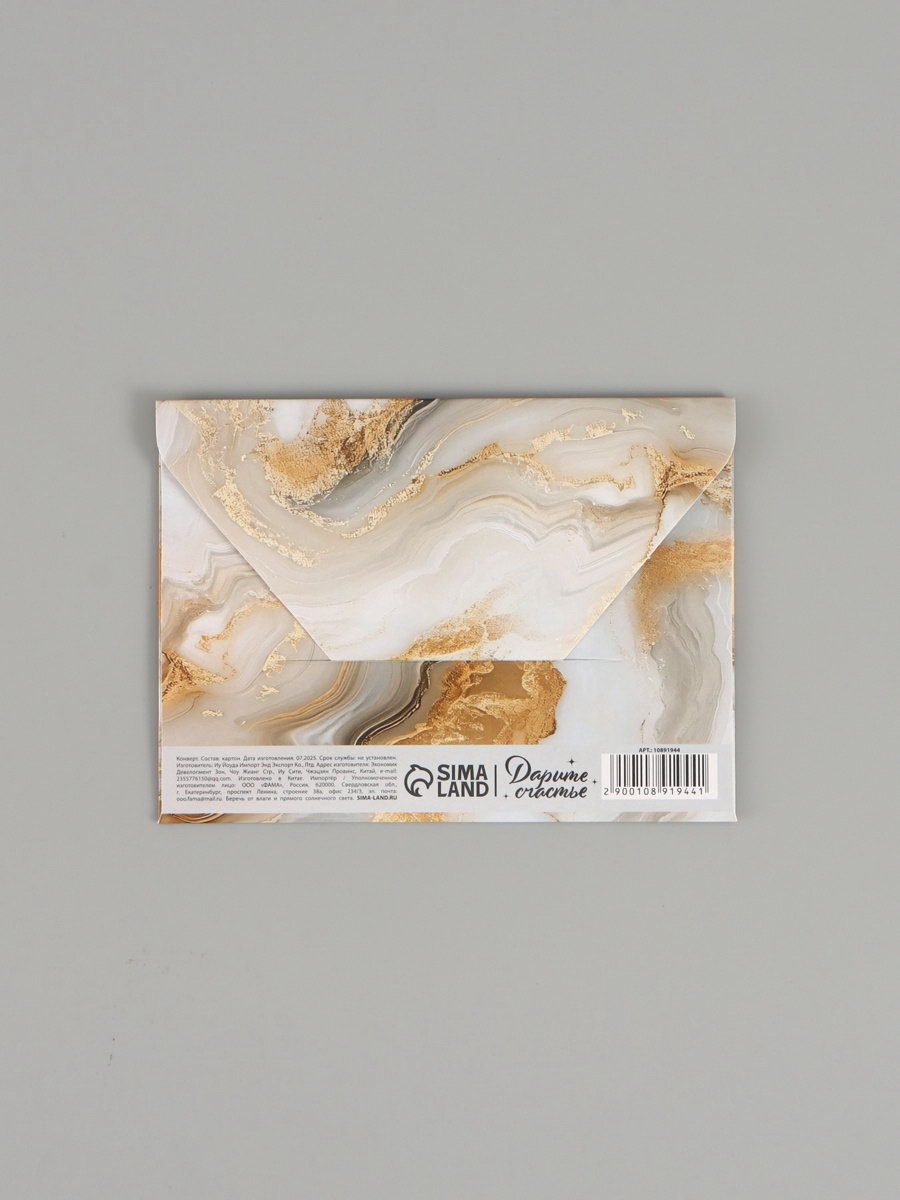 Конверт подарочный "Мрамор", 15x11 см, 11x15x0.1 см., Дарите Счастье, Китай