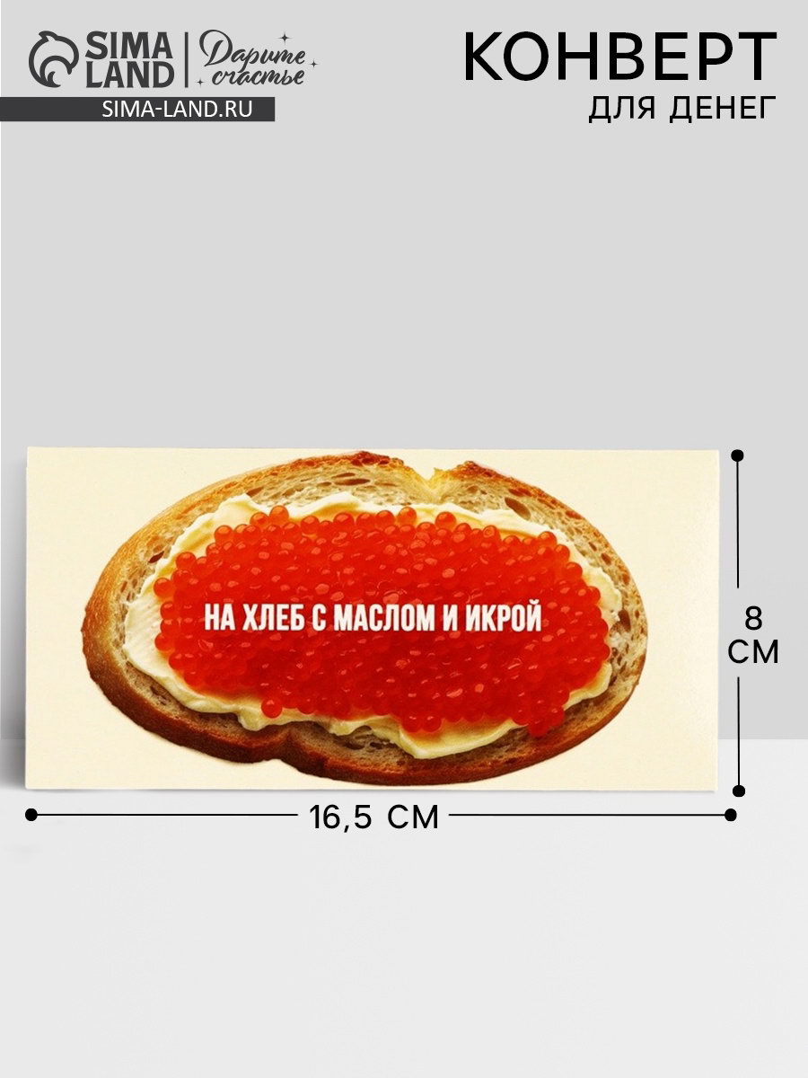 Конверт для денег "Бутерброд с икрой", 16.5x8 см, Дарите Счастье, Россия