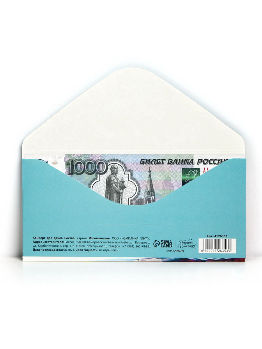 Конверт для денег "Поздравляем!", розовый букет, 16.5x8 см, Дарите Счастье, Россия
