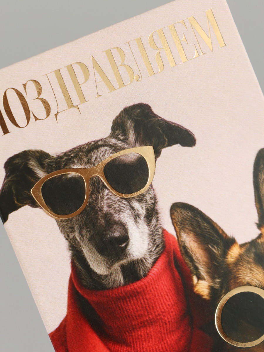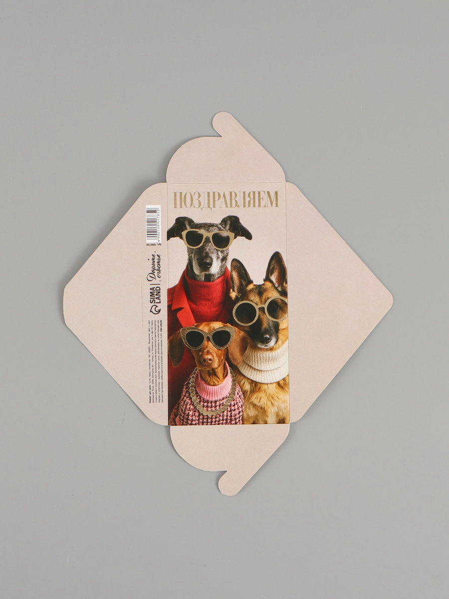 Конверт для денег "Поздравляю", пёсики, тиснение, 16.5x8 см, Дарите Счастье, Россия